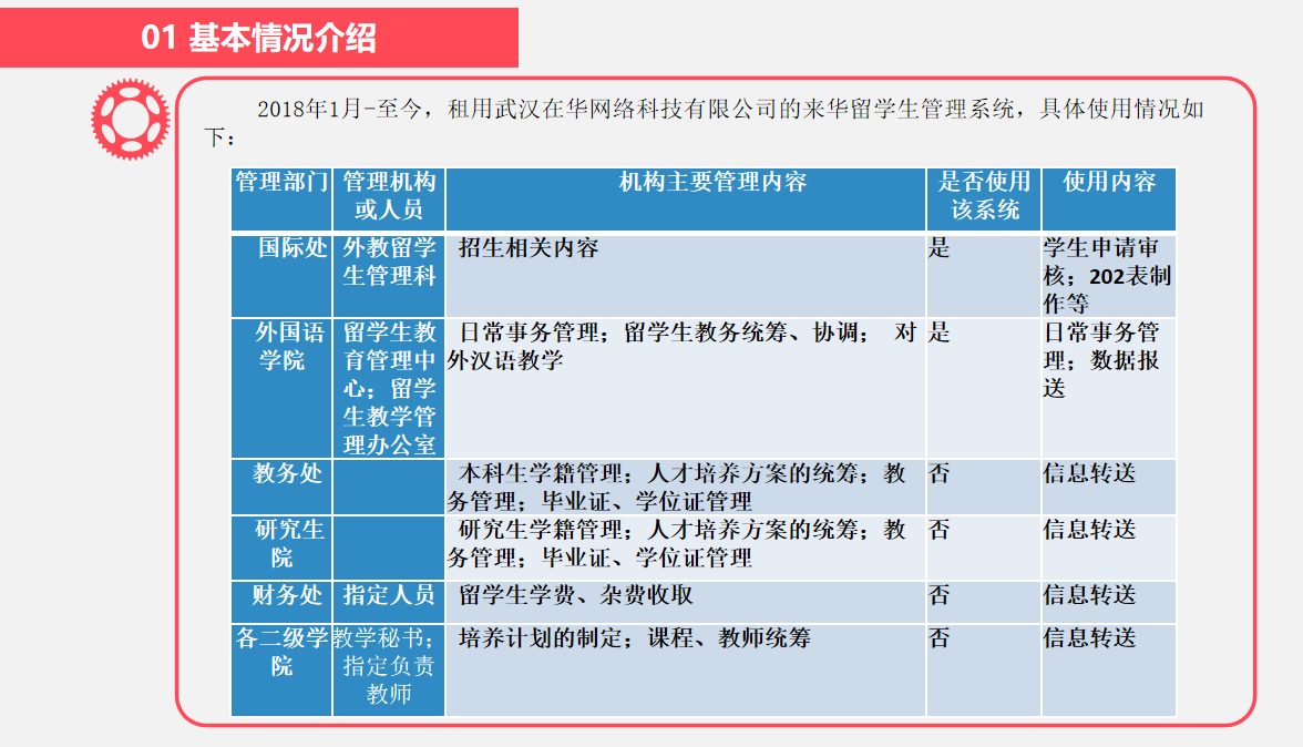 工作坊基于侯凯老师对调研的对象分类,分别邀请来自西南政法大学、重庆理工大学、四川外国语大学、重庆大学、永利3044noc的老师分享来华职工信息化管理服务经验。西南政法大学邹丹老师作为“高校研发类”代表,讲述西政个性化定制来华职工管理平台的全过程,并展示当前来华职工管理平台的全貌。