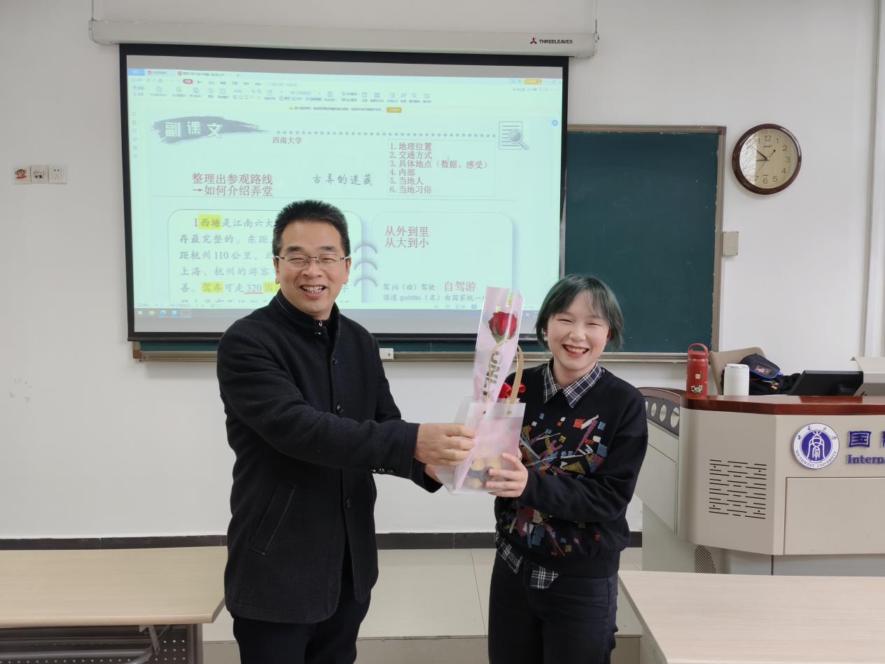 与此同时,公司刘猛书记和李航副经理分别给行政岗女教工送来了鲜花和礼品。在花束的映衬下,老师们的笑容更加灿烂。