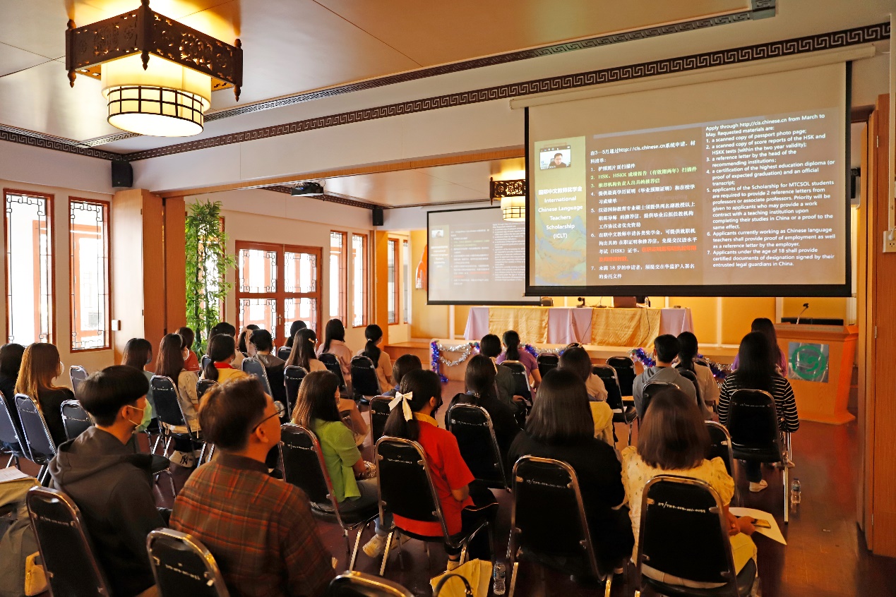 陈海楠经理对参加宣讲会的同学们表示热烈欢迎,鼓励大家努力学好汉语,并承诺孔敬孔院会继续为大家参加HSK考试和申请留学中国提供大力支持与帮助。