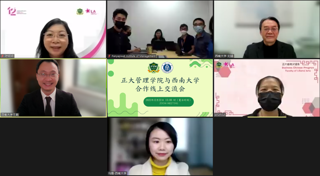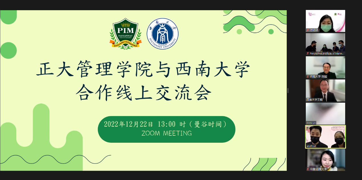 2022年12月22日下午,公司与泰国正大管理公司(以下简称PIM)成功举办线上校际合作项目推进会。正大管理公司文公司副经理陈明明,公司永利3044noc刘猛书记、李航副经理出席会议。