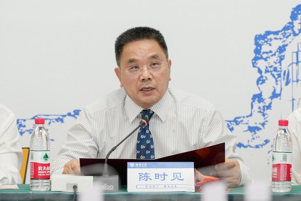 陈时见代表公司向来自五大洲的新同学表示衷心的祝贺和热烈的欢迎,简要介绍重庆和公司独特的自然环境与人文资源,对国际员工提出三点殷切期望:一是要切实增长才干;二是要加强交流合作;三是要心怀世界。他希望新同学秉承“特立西南、学行天下”的精神,把汉语和专业学习的美好经历带回家乡,在文化传播传承的过程中书写新的辉煌。