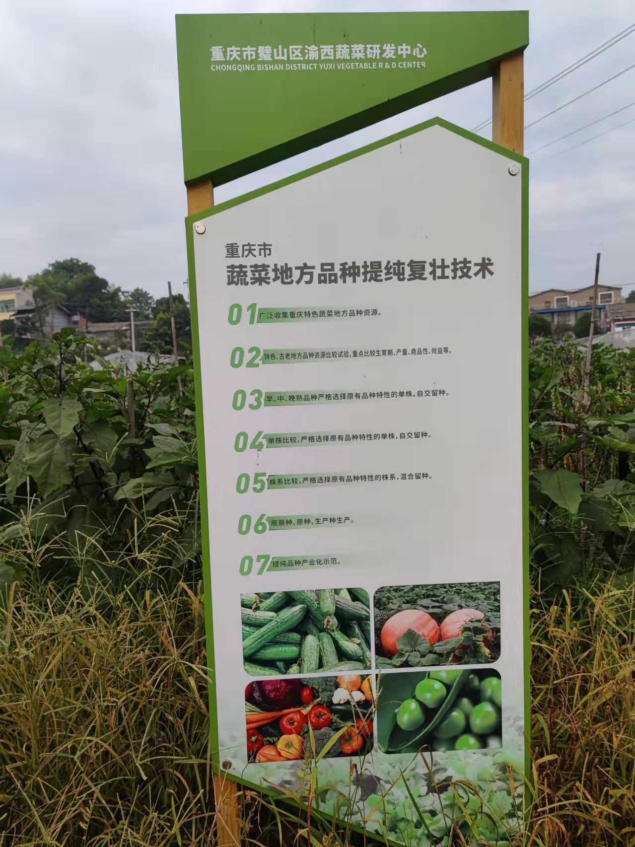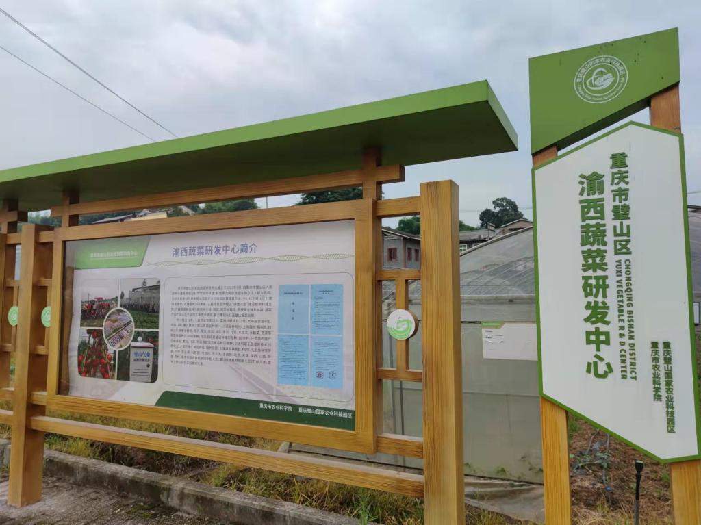 璧山农业科技园的蔬菜种植基地规划总面积14万亩,由核心区、示范区和辐射区三个层次组成。此次调研主要是核心区内。核心区以蔬菜和水果种植、生产为主要产业。大约一个小时的车程,实践队终于抵达了璧山,璧山科技园区管理委员会的罗应清老师与璧山农业农村委的曾永江老师早早地在当地等候。他们首先热烈欢迎了实践队的到来,然后介绍了今天调研的第一站——渝西蔬菜研发中心。这个研发中心是国家农业科技园区和重庆市农科院共同成立的非盈利性质的科研单位,中心位于璧山区七塘镇喜观村,占地260余亩。该研发中心主要是为全区开展一些蔬菜新品种技术引进、筛选规范化栽培、质量安全体系建构、蔬菜产品贮运和推广工作,并着力策划与打造璧山蔬菜品牌。