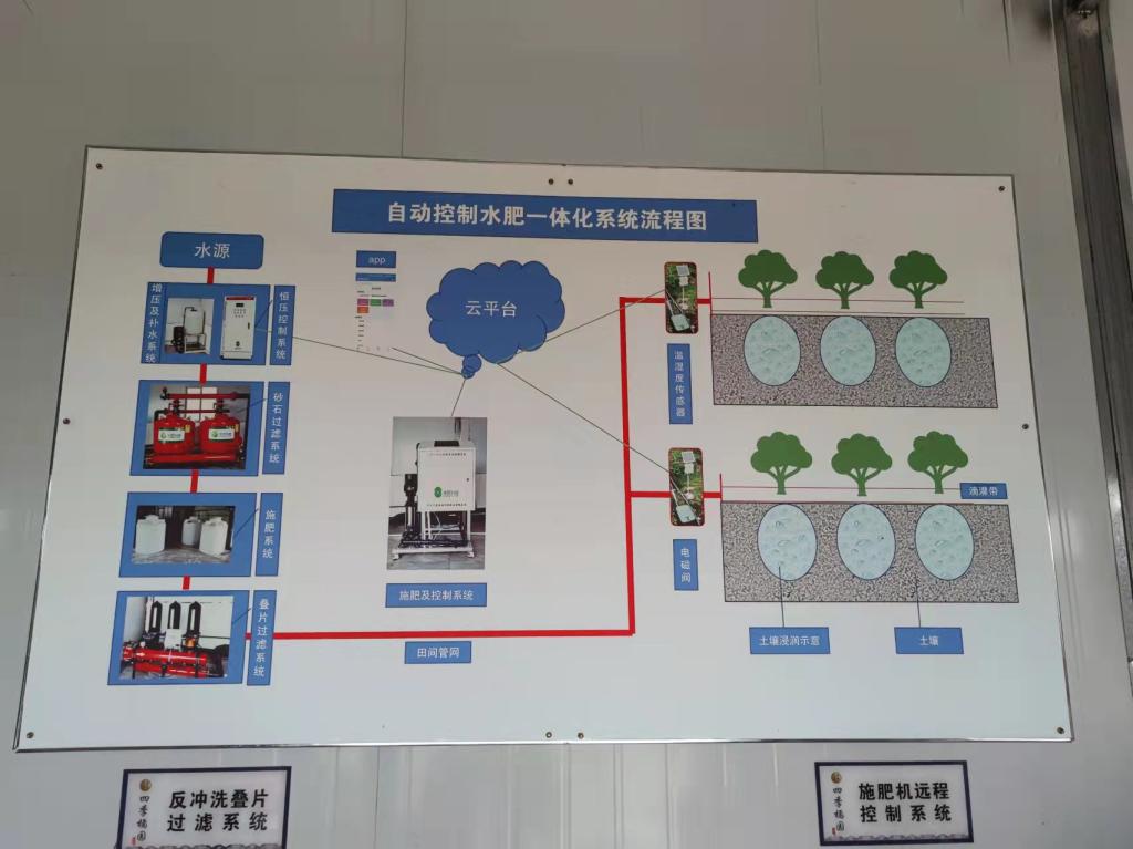 调研完蔬菜基地,天气也逐渐炎热起来。在两位老师的陪同下,实践队紧接着赶往下一个园区——精品果园试验园。果园负责人介绍了正在进行的智慧农业建设方案——璧山区七塘果园智慧化应用。该项目希望通过智慧化应用,为“璧山区城市生活网众享商城”的果蔬生鲜提供优质水果,让璧山人民吃上本土、健康、放心的水果。项目包含四个内容:建立农业生态旅游系统,实现农业、科技和旅游的共生,打造品牌效益,提高经济效益;以物联网等技术为基础,建立现代化的农业生产管理模式和示范基地;建立农业农产品检测及溯源系统,塑造和维护品牌,保护消费者权益;建立水肥一体化灌溉系统,实现生长环境调节的高效化、智能化。果园负责老师用手机着重介绍了物联网技术在水果产业中生产到销售环节的应用,即生产者需要将产品生产到销售的全过程视频上传到客户端,用户通过手机扫码即可了解产品从生产到销售的全过程。继而跟随园区负责人的脚步,观看了水果采摘自动运输设备,进入水肥一体化操作室,观摩运作的整个流程、了解了系统运行的原理。