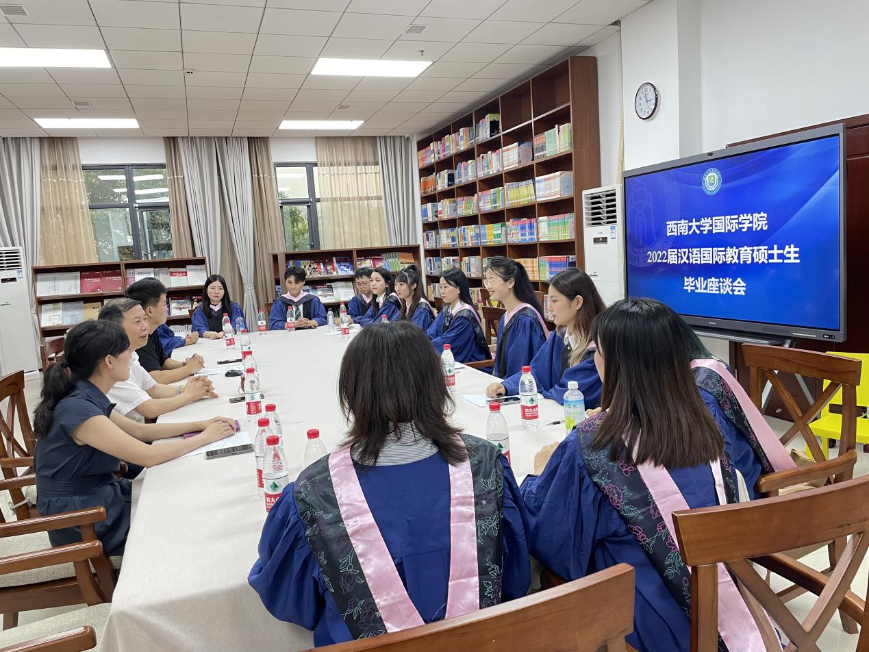 2022年6月23下午,2022届汉语国际教育硕士中国研究生毕业座谈会在图书馆316室举行,刘承宇经理参加座谈交流,会议由杨昆主持。
