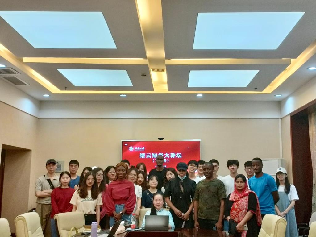 2022年5月26日下午3点,“缙云知华大讲坛”第七讲通过“线上+线下”的方式在公司紫云楼签约室举行,本次论坛的主题是:Belt & Road: Bridging Civilizations to a Human Community of Shared Future。永利3044noc“一带一路”研究院研究员周玉佳教授受邀主讲,40余名在校中外员工和近百名境外国际员工参加此次讲座。