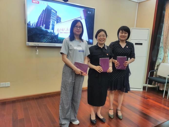 陈悦同志通过介绍习总书记参观考察人大的路线,让大家明白了思政课、校史党史、红色文献对高校、对青年一代的重要性,同时也了解了习总书记对哲学社会科学和高校建设的建议与嘱托。代宇航同志围绕讲话内容,从寄语青年、谈思政教育、寄语教师和建设中国特色世界一流大学等方面进行解读。