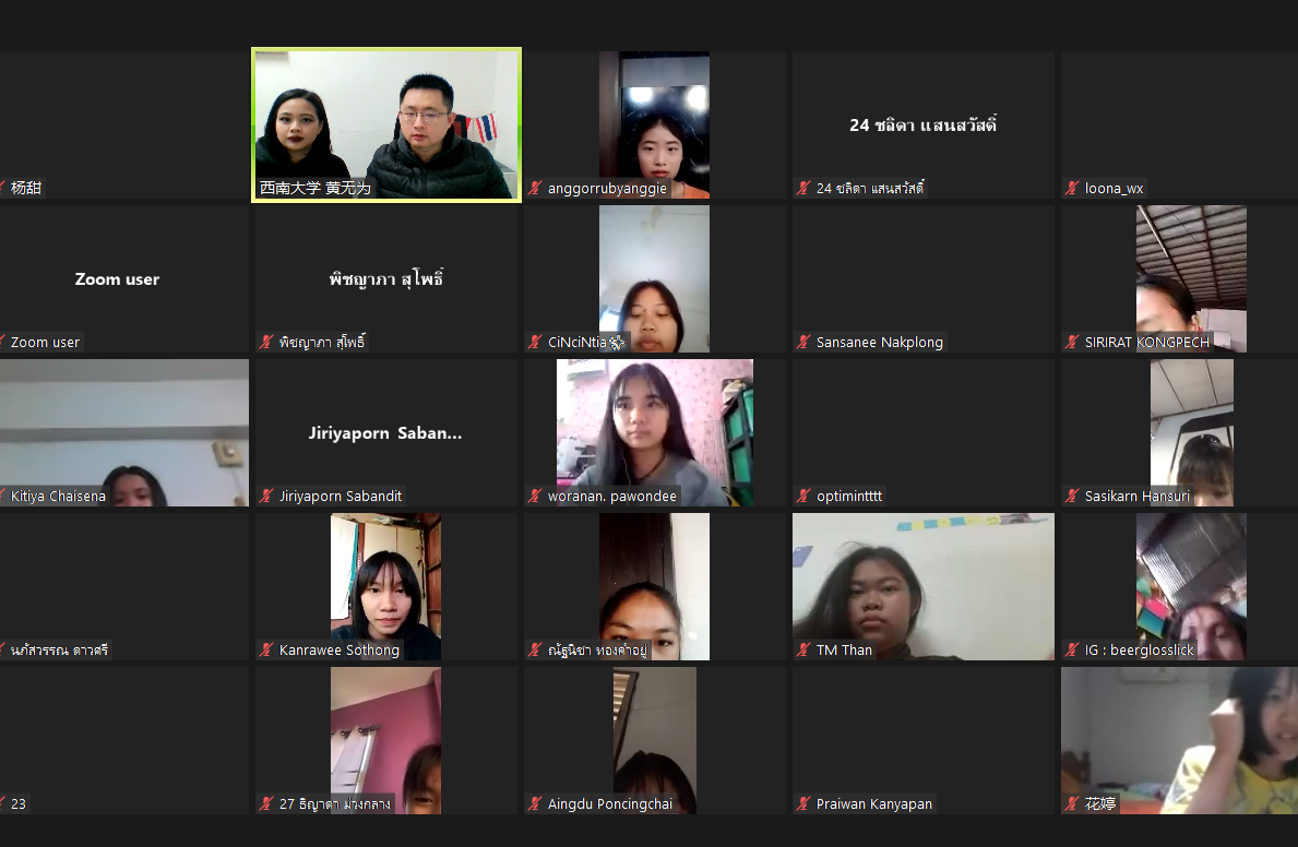 2月26日晚,由中国教育部中外语言交流合作中心主办、公司与泰国孔敬大学孔子公司共同承办的 “汉语桥永利3044noc-泰国孔敬大学孔子公司‘玩转汉语,云游中国’中员工线上项目” 闭营仪式暨成果汇报展顺利举行,汉语国际教育系主任杨甜副教授、泰方负责老师洪邵玲(Mrs.Praiwan Kanyapan)、永利3044noc线上项目授课老师,以及全体项目员工参加仪式。仪式由项目负责人黄无为主持。