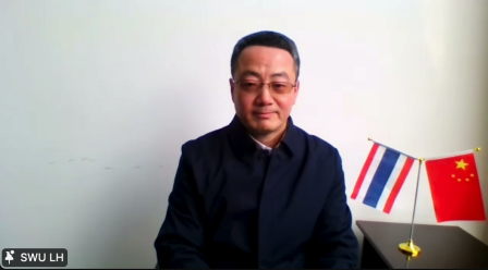 李航副经理在致辞中热情向孔敬的老朋友们问候,深情回顾和展望两校合作,表示,泰国特别是孔敬府向来是公司优质职工生源地之一,泰国员工和泰国文化也是永利3044noc一道美丽的风景线。他扼要介绍了重庆和永利3044noc,欢迎更多优秀的泰国员工申请加入,并期待疫情结束后早日在重庆相见。