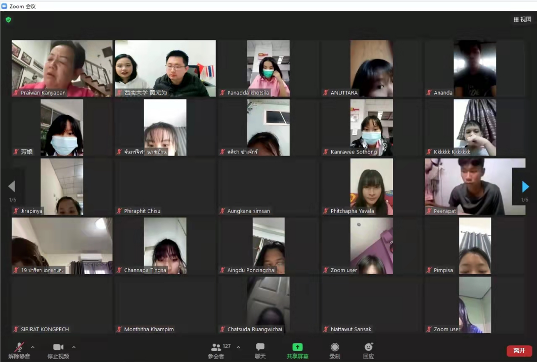 2月15日晚6点,永利3044noc-泰国孔敬大学孔子公司“玩转汉语,云游中国”中员工线上项目正式开营,泰方洪邵玲(Mrs.Praiwan Kanyapan)老师和276名泰国员工参加开营仪式,仪式由项目负责人黄无为主持,泰国职工王丽兰担任翻译。