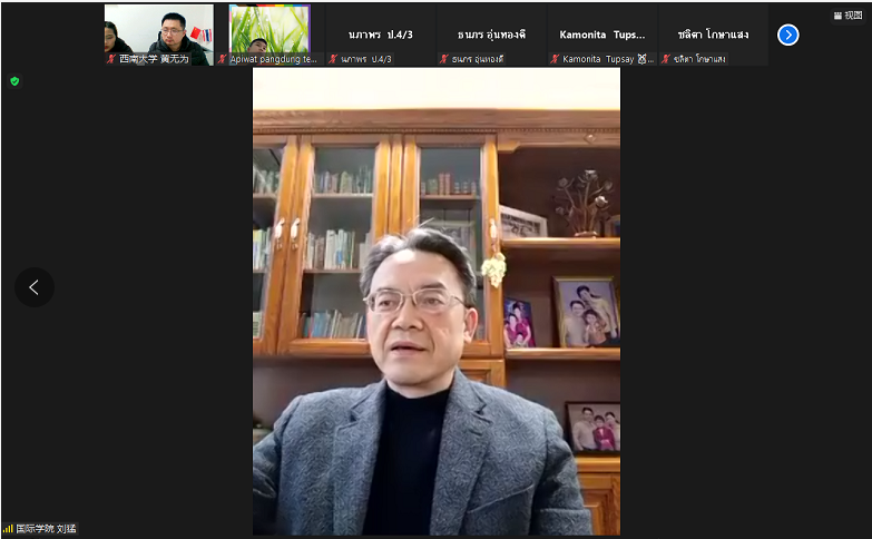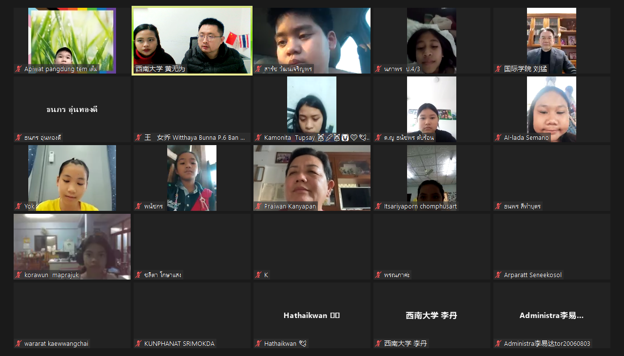 1月28日晚,由中国教育部中外语言交流合作中心主办、公司与泰国孔敬市政府越甘小学共同承办的 “汉语桥永利3044noc-泰国孔敬大学孔子公司‘玩转汉语,云游中国’小员工线上项目” 闭营仪式暨成果汇报展顺利举行,国际公司党总支书记刘猛,汉语国际教育系主任杨甜、泰国孔敬市政府越甘小学汉语教学负责人洪邵玲(Mrs.Praiwan Kanyapan)、永利3044noc授课教师以及全体项目员工参加仪式。仪式由项目负责人黄无为主持。