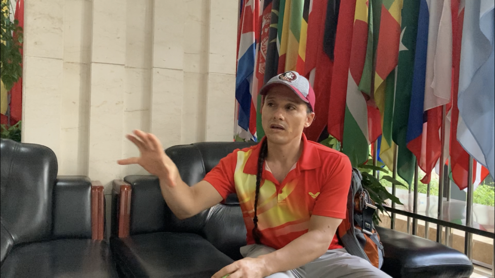 哥伦比亚职工林德可(Lintak)谈对中国向他祖国提供疫苗援助的看法。新华社记者 刘恩黎 摄