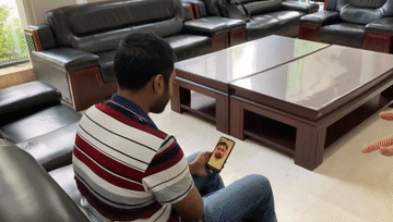 李浩(Usama Kalim)正在和远在巴基斯坦的弟弟视频连线。新华社记者 刘恩黎 摄