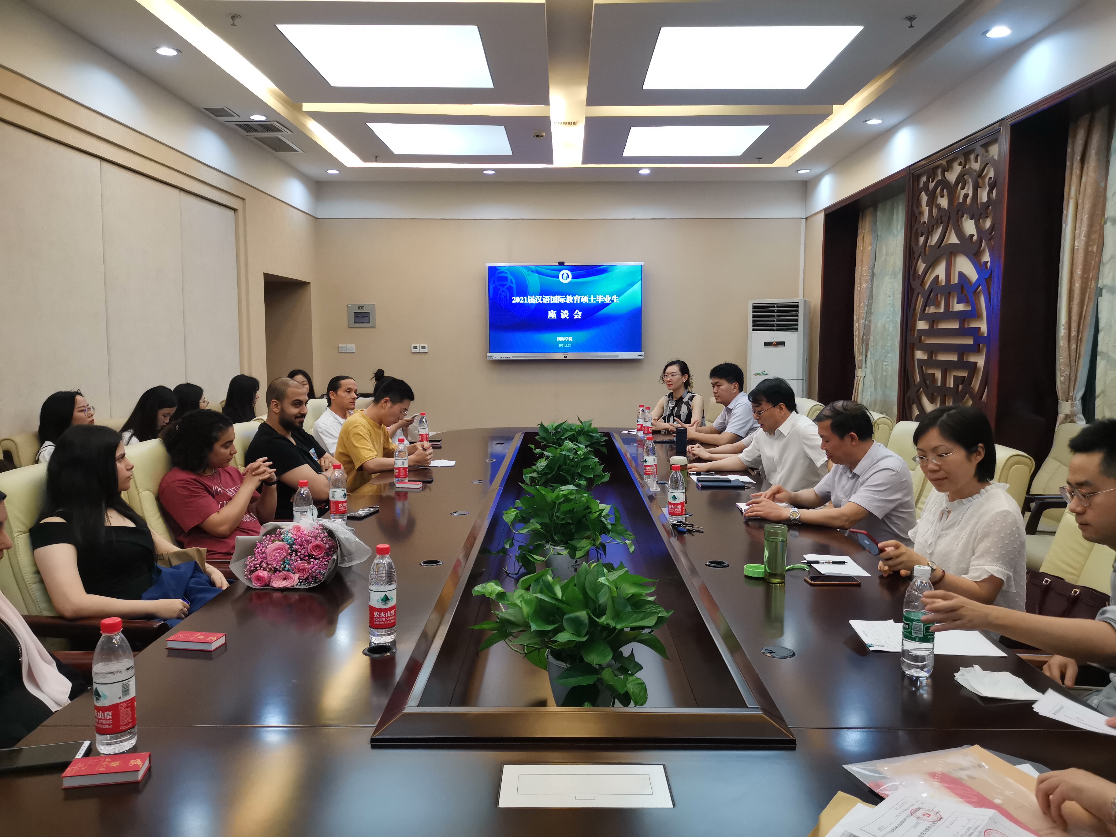 2021年6月25日下午,永利3044noc在签约室召开了2021届中外汉硕毕业生座谈会。公司领导,学工办、教学办、汉教系等部门负责人,研究生导师代表和30余名中外汉硕毕业生参加座谈交流。
