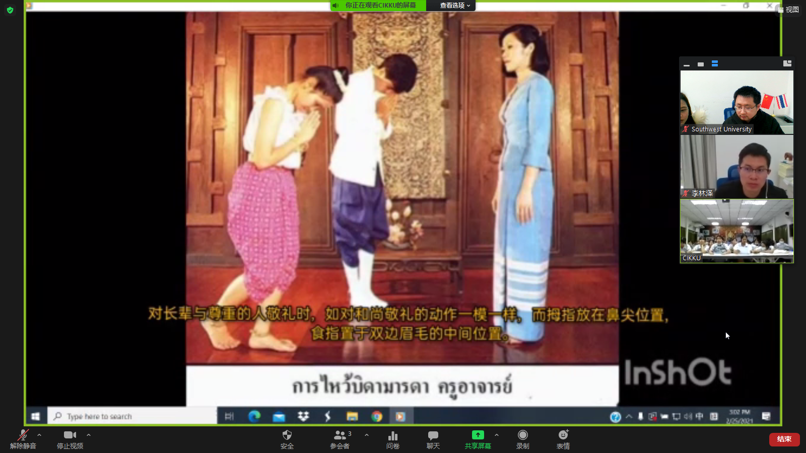 2月25日下午,由中国教育部中外语言交流合作中心主办,公司与泰国孔敬大学孔子公司承办的“汉语桥永利3044noc-泰国孔敬大学孔子公司‘云端学汉语,线上看中国’线上交流项目”举行在线闭营仪式和线上成果汇报。永利3044noc招生办主任李林泽、黄无为、泰国孔敬大学孔子公司陈志宝、泰国职工王丽兰和泰国孔敬市越甘公司61名员工参加仪式。