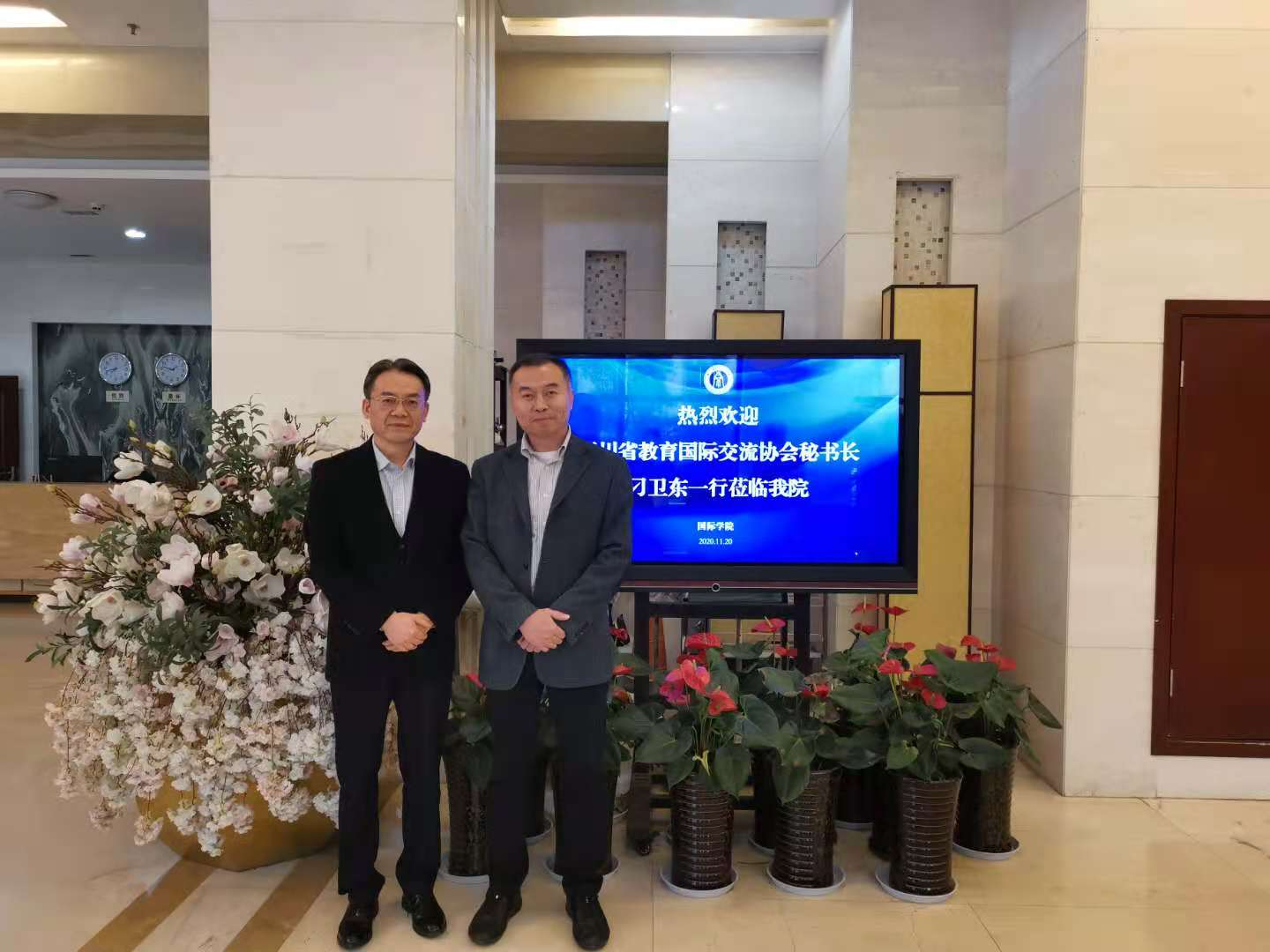 11月20日下午,四川省国际教育交流协会秘书长刁卫东来公司调研公司国际员工工作,商议合作招生事宜,刘承宇经理、刘猛书记、李航副经理和招办负责人在304会议室与客人进行座谈交流。
