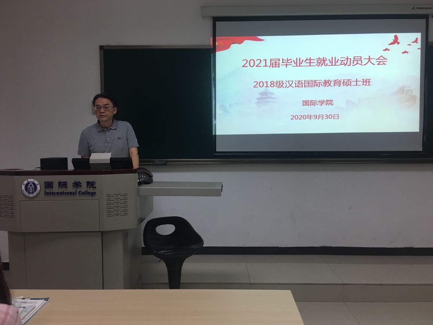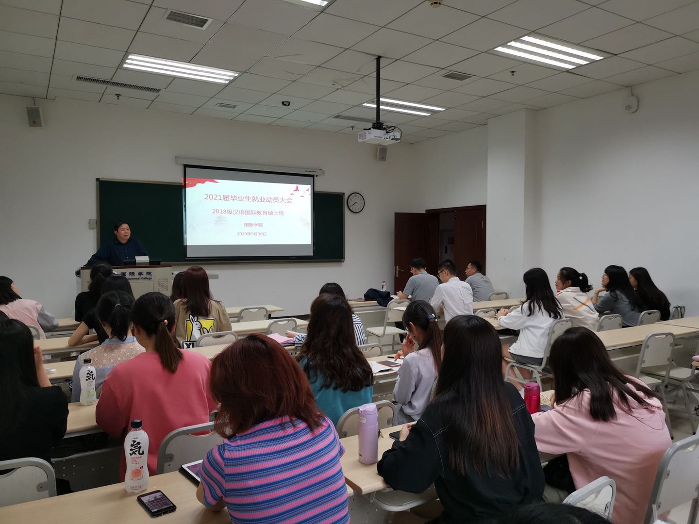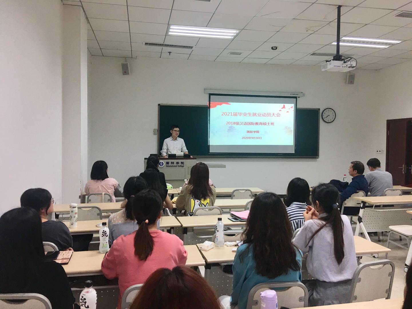 伴随着毕业季的来临,为了帮助2021届汉语国际教育硕士毕业生树立正确的择业观,处理好就业与毕业的双重压力,走好毕业季之路,9月30日下午4:30,公司在312室隆重召开毕业生就业动员大会。