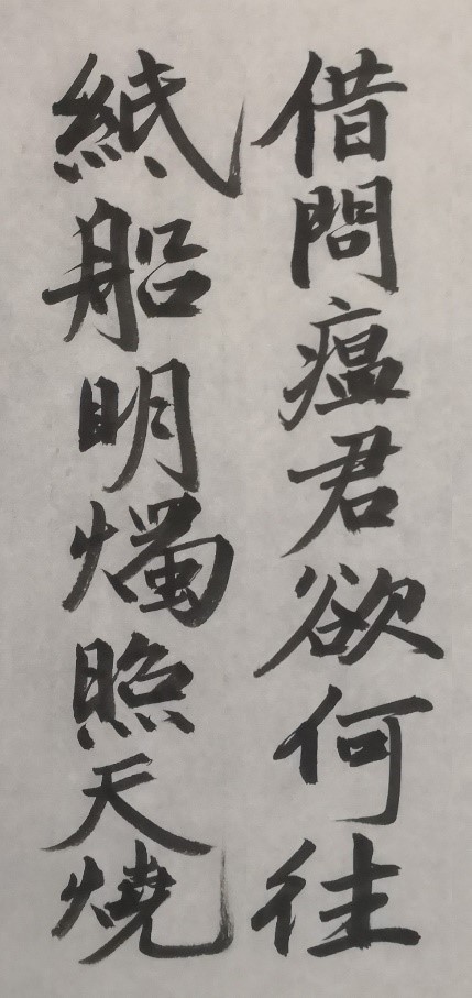最后,耿军老师对讲座总结。强调:瘟疫无情,人有情!新冠病毒全球肆虐,对全世界来说都是一次严重危机和严峻考验。中国在抗击疫情中秉持的人类命运共同体理念以及所展现的大国担当值得肯定。从疫情中我们学到,唯有团结合作、共同行动,才能打赢全球抗疫阻击战,这也是人类战胜病毒的唯一出路和正确选择。他还把自己手书的毛泽东同志的一首七律《送瘟神》中的两句作为抗疫必胜的口号与大家分享: