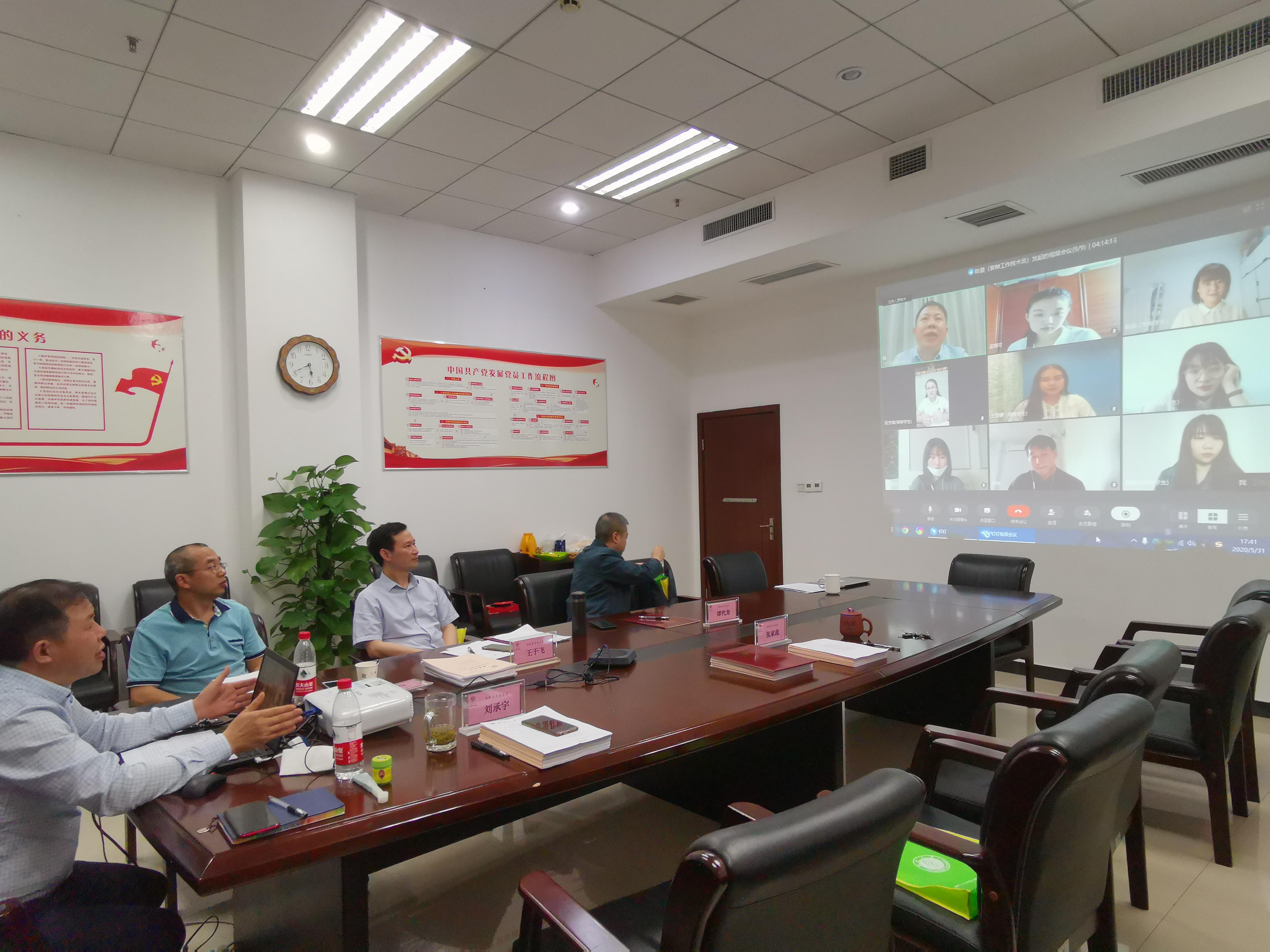 委员交流结束后,答辩正式开始。上午9:00-12:30,线下答辩在紫云楼312教室进行,何洁和来自尼日利亚的宋珂等9名在校中外员工依次参加了答辩;下午1:30-5:30,线上答辩在紫云楼304会议室进行,陈希、孟栩可和来自泰国、越南、尼日利亚等国家的8名中外员工依次远程接入钉钉视频会议进行论文PPT展示与陈述,并回答了答辩委员会委员提出的问题。