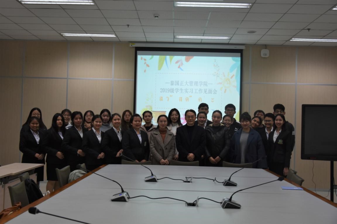 11月19日下午四点半,2019级泰国正大管理公司员工实习见面会在公司中心图书馆13楼会议室圆满举行。国际公司党总支书记刘猛,图书馆读者服务一部王怡主任,张璐副主任,永利3044noc的吴宗燕老师以及12名泰国实习生,10余名图书馆志愿者参加会议。