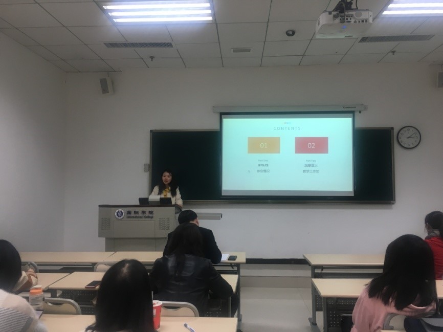 接着,公司教师冯雪和大家交流了参加“第五届语言学与汉语教学国际论坛”的收获。该会议是一个旨在提倡以坚实的语言学研究为基础促进与提升汉语二语教学的国际学术交流平台,由美国、北京和香港八所大学有关同仁共同发起并轮流组织,此次论坛在美国纽约召开。刘乐宁、孙朝奋、储诚志等汉语语言文字学界的知名专家在会上做了精彩的报告;冯雪在论坛上做了题为“泰国员工习得汉语三字组变调模式试验研究”的交流发言,还在论坛期间观摩了普林斯顿大学中文教学工作坊。冯雪表示此行使她增长了见识,拓宽了视野,受益匪浅。