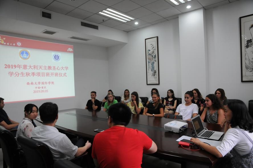 2019年9月5日上午10:30,2019意大利天主教圣心大学学分生秋季项目班开班仪式在永利3044noc紫云楼304举行。永利3044noc副经理李航,永利3044noc招生办公室代表黄无为,永利3044noc任课教师代表刘妍芩,以及2019意大利天主教圣心大学学分生秋季项目班全体14名员工参加了本次仪式。仪式由班主任老师张鹭遥主持。