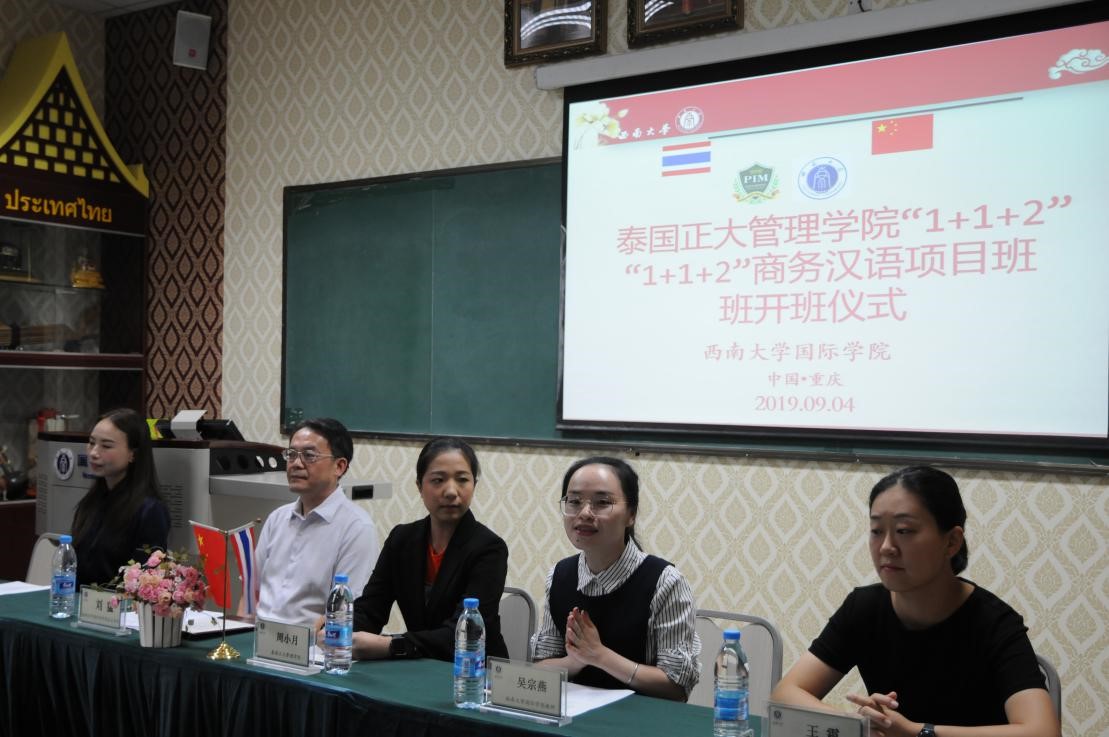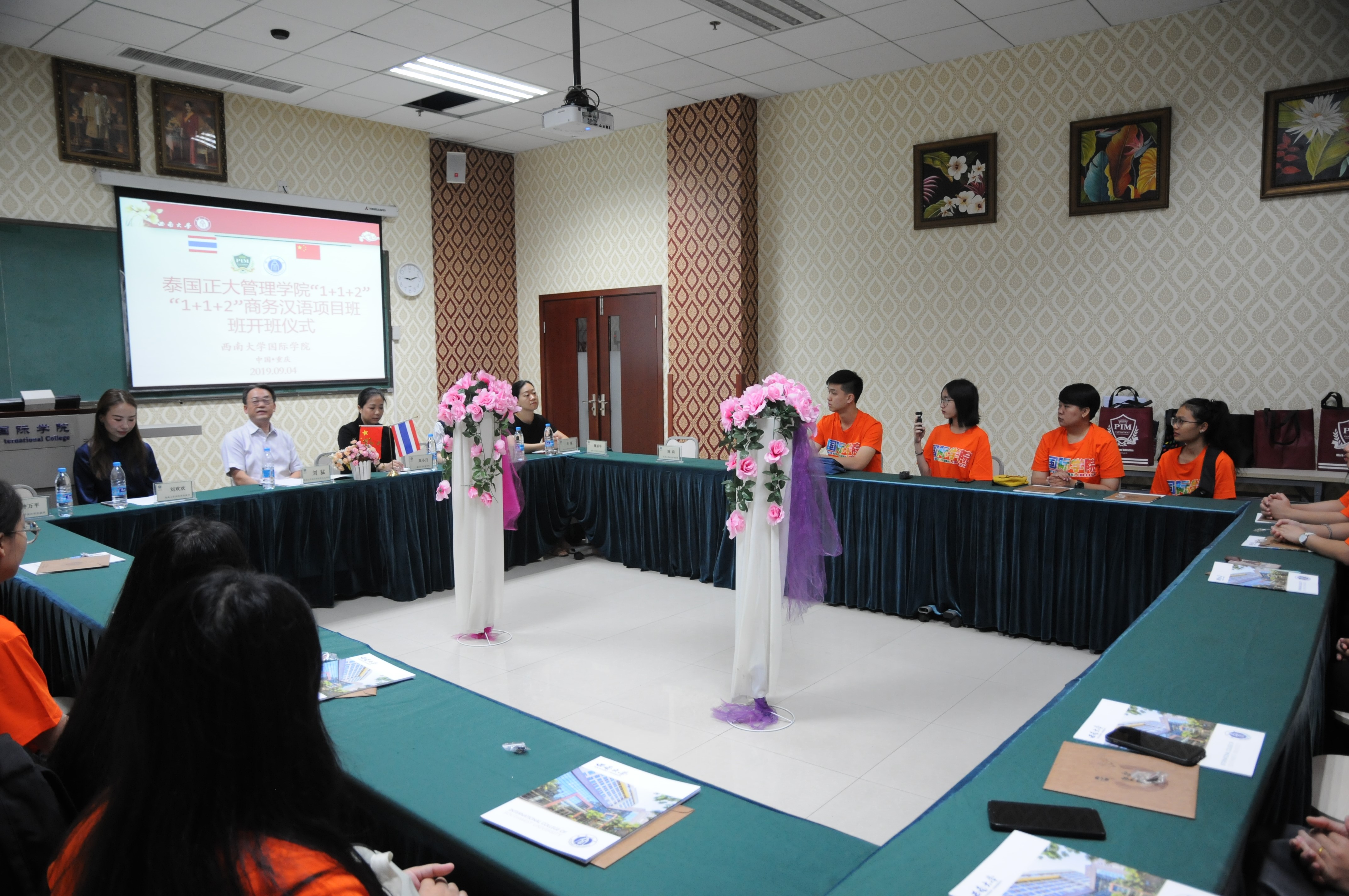 2019年9月4日上午9点,2019级泰国正大管理公司“1+1+2”商务汉语本科项目班开班仪式在永利3044noc紫云楼泰国文化教室举行。国际公司党总支书记刘猛,泰国正大管理公司周小月老师,永利3044noc任课教师代表,2019级泰国正大班新生以及来自公司2019级汉语国际教育硕士的代表参加了会议。会议由班主任老师吴宗燕主持。
