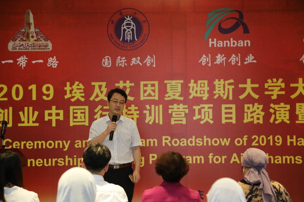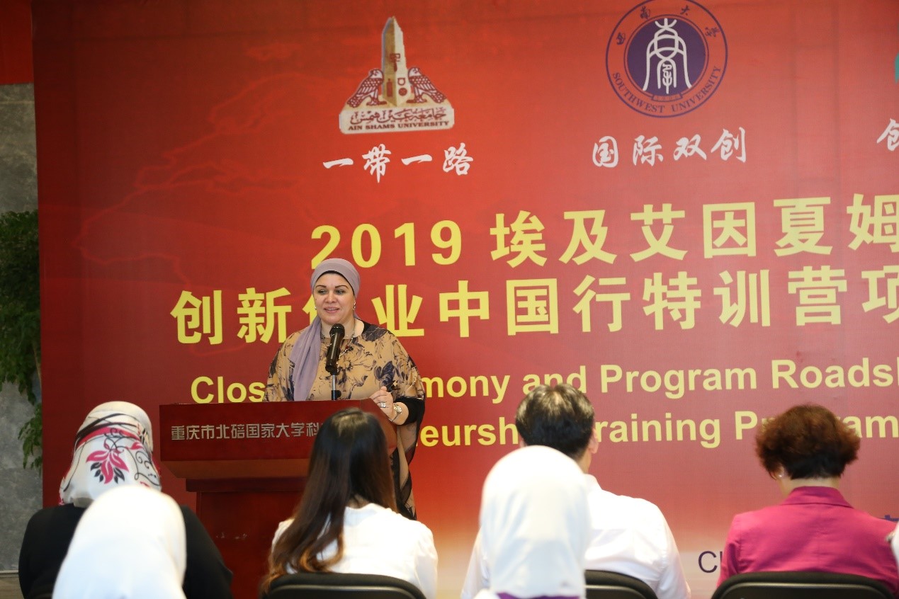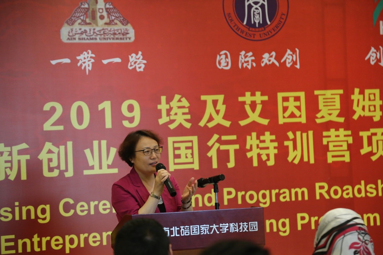 7月4日下午,永利3044noc和北碚国家大学科技园联合举办“2019埃及艾因夏姆斯大学老员工创新创业中国行特训营”项目路演暨闭营仪式。经理王静,党总支书记刘猛,副经理李航,大科园党委书记、管委办主任刘双全,重庆市北碚大学科技园发展有限公司总经理徐春庆,领队教师、埃及艾因夏姆斯大学国际处处长Dr.Esrra,特训营导师团队,班主任王鹊和全体营员参加,埃及艾因夏姆斯大学中阿翻译班学员列席。