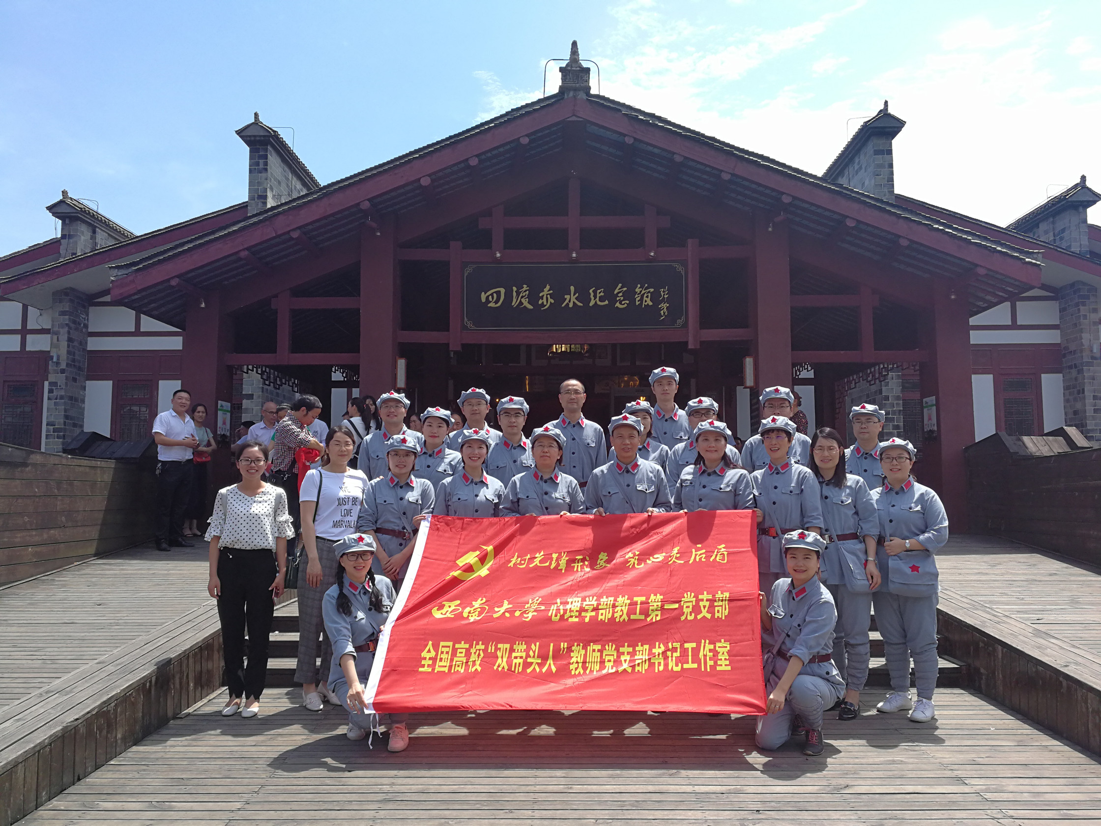 为庆祝中国共产党建党98周年,回顾和缅怀党的光辉历史,接受党性教育和革命传统再教育, 6月28日-29日,首批全国高校“双带头人”教师党支部书记工作室、全国高公司党建工作样板支部培育创建单位——永利3044noc心理学部教工第一党支部率教师党员一行20人前往中国红色名镇、红军四渡赤水之地——贵州习水土城镇开展了为期一天半的“不忘初心 牢记使命”主题教育活动。