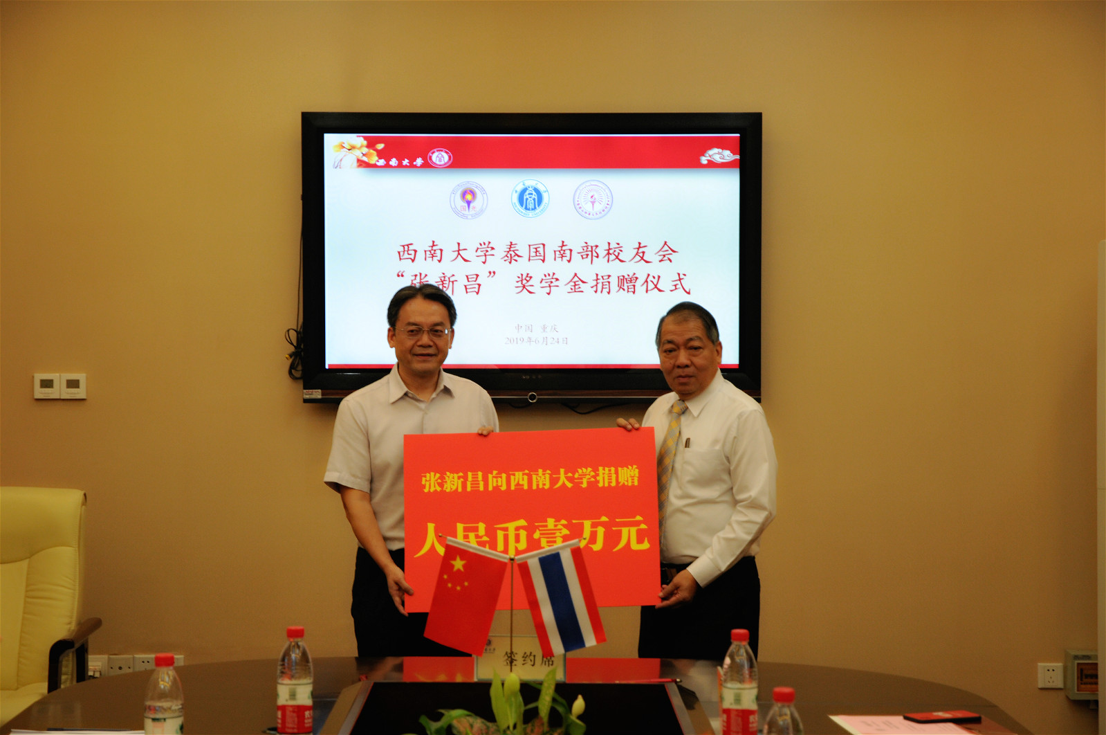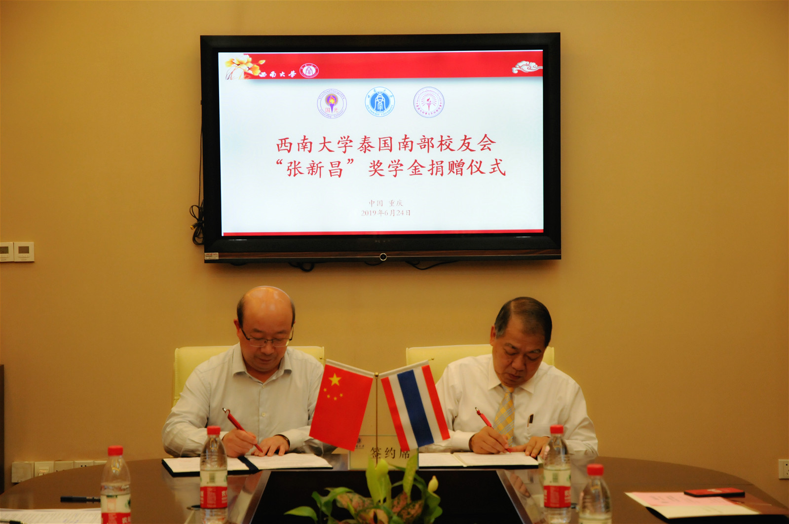 在一片热烈的掌声中,受赠双方代表龚常智秘书长和张新昌先生 共同签订了捐赠协议。为支持永利3044noc来华留学教育事业的发展,感谢永利3044noc对国际员工的精心培养,张新昌先生向公司捐赠1万元人民币,设立泰国员工会“张新昌奖学金”,用以奖励品学兼优的泰国南部员工。