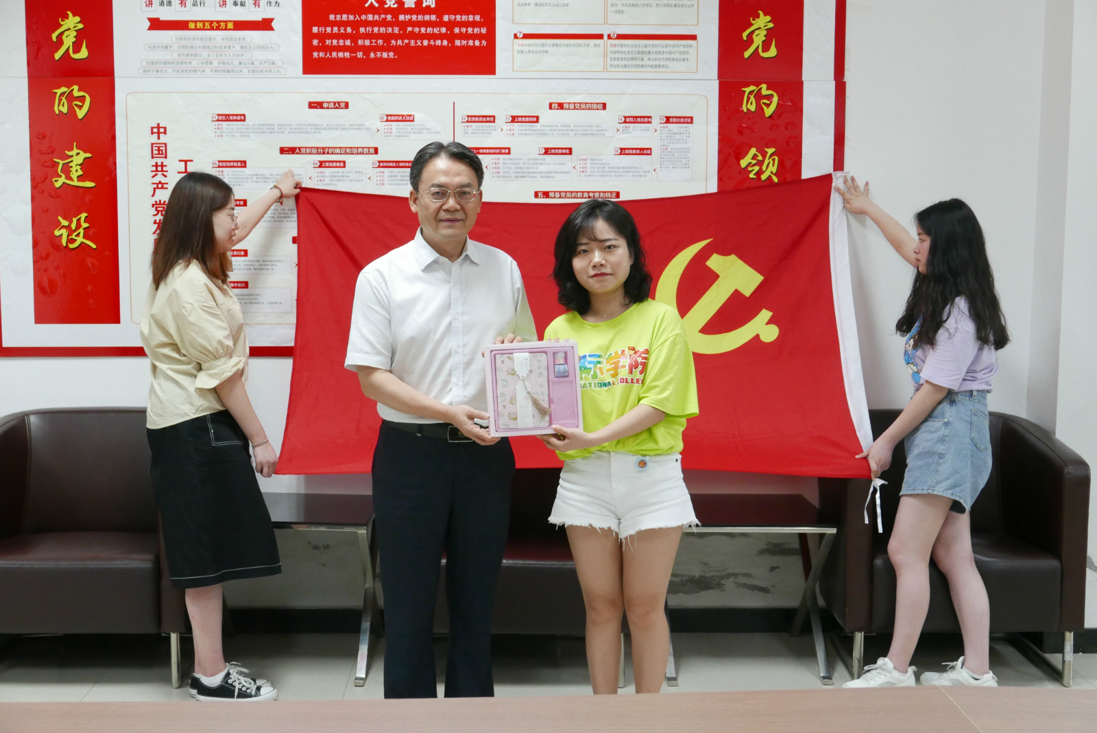 本次毕业生党员主题教育活动包括:重温入党誓词、党旗下的毕业承诺、给母院建言献策、“汉语角”党员志愿服务站启动仪式及宿舍园区清扫活动。