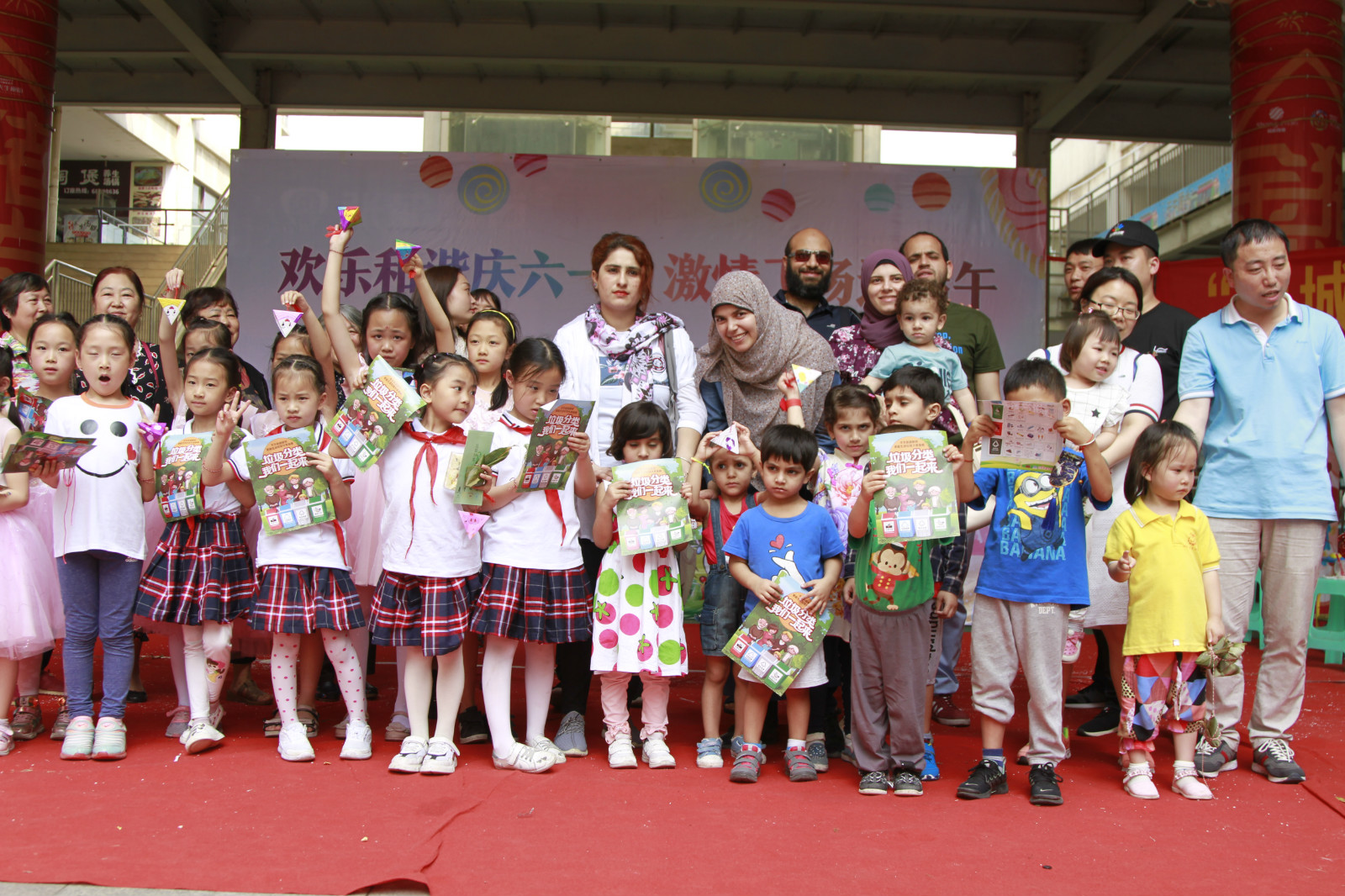 5月31日下午1点,天生丽街中庭花园热闹非凡,几位志愿者小姐姐手拿棉布香包袋,装入香料、棉花,熟练做出一个个驱蚊香包,并不时用中英文双语进行解释,台下小朋友和家长学的有模有样。其中,有几个“洋小孩”特别惹人注目,他们是永利3044noc外教和职工的孩子,分别来自加拿大、蒙古,埃及,也门,巴勒斯坦等国家。