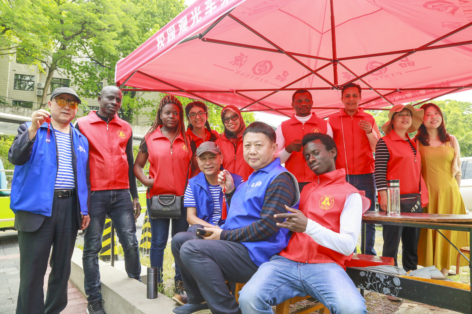 与此同时,“洋雷锋”志愿者服务队也行动起来,职工队员们利用文化体验课上学到的中国结编织技术,编织出了象征感恩和祝福的中国结吊坠,赠送给服务和帮助过自己的保安、食堂后勤工作者、校车司机、外卖小哥。“他们是我们最常见到、但又最容易忘记的人,今天要对他们好好说声谢谢”......“洋雷锋”们这样说到。