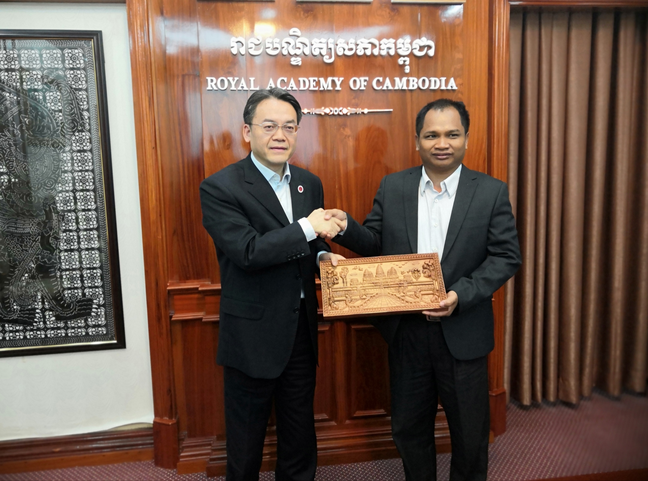 代表团还专程访问了柬埔寨皇家科公司和教育部。皇家科公司作为柬政府的重要咨询研究机构,隶属于柬埔寨内阁事务部,下设6个研究所,主要培养硕士、博士研究生。经过商谈,双方对派遣柬方官员和员工来华进行短期汉语研修,加强在农业、动物、植物、家蚕等领域的科研合作,以及探索研究生联合培养、共建柬埔寨国家公园等事宜,达成了诸多共识,并探讨了在柬埔寨驻重庆总领事馆的支持下,共建柬埔寨研究中心的可行性。代表团拜访了柬埔寨教育部负责教育审计的官员。在听取了公司与泰国教育部高教委以及越南教育管理公司合作范例的情况介绍后,柬方官员表达了对促成双方合作的信心,并就官员短期培训项目和境外合作办学提出中肯建议。