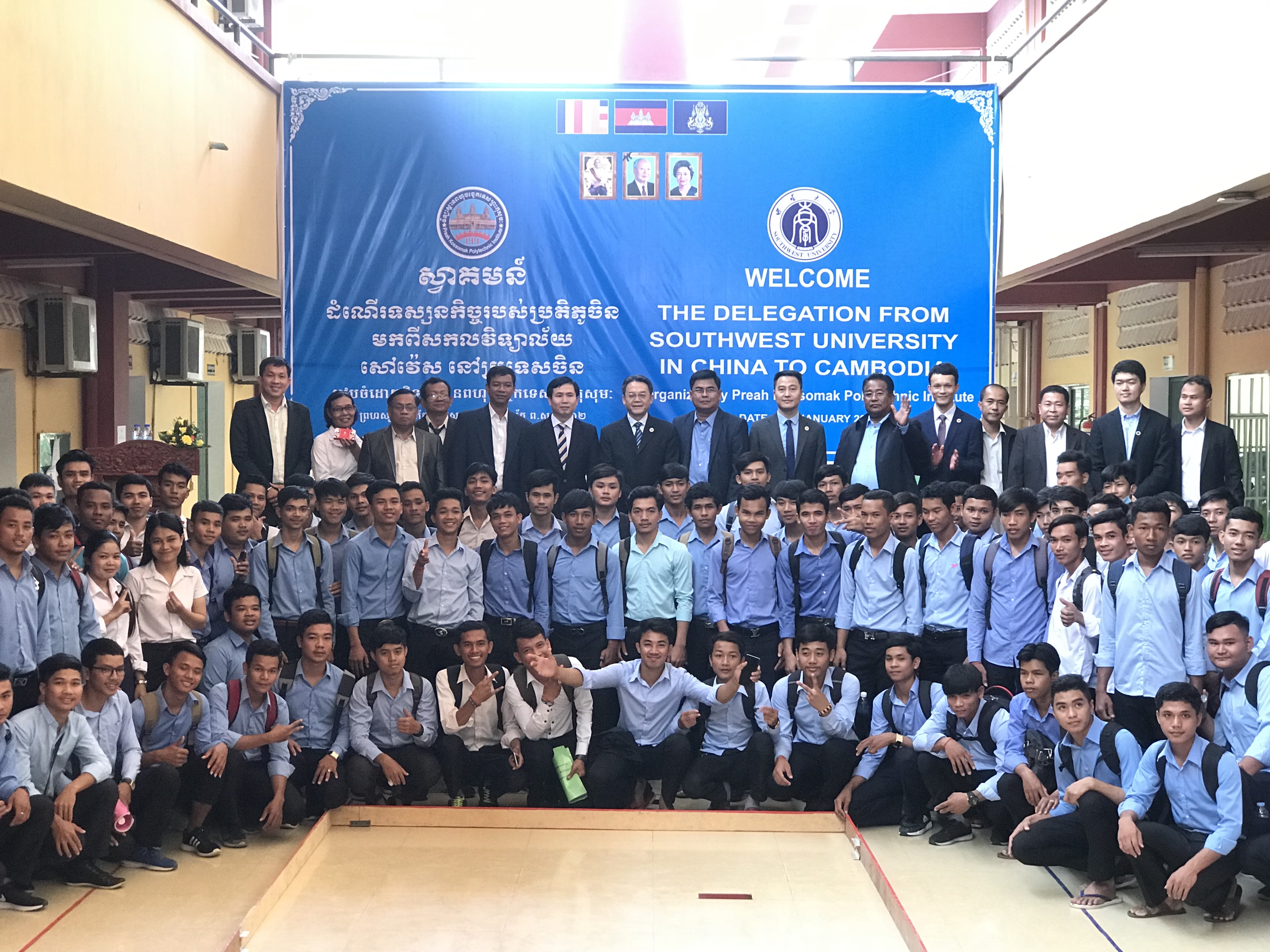 代表团先行访问了柬埔寨金边皇家大学、国立管理大学和皇家理工公司(Preach Kossomak Polytechnic Institute)等相关高校,柬方负责人充分肯定永利3044noc良好的办学条件,并期望尽快启动双方实质性合作。其中,金边皇家大学副董事长CHHUN HOK对与永利3044noc教育学和心理学领域的合作表达出浓厚兴趣;国立管理大学副董事长SENG BUNYHOEUN则表示愿意在短期游学项目和学分项目上尝试合作,并就教学、食宿、学费等细节进行商谈。代表团与来自皇家理工公司的400余名在校员工进行了互动,就留学西大的有关问题进行了现场答疑。