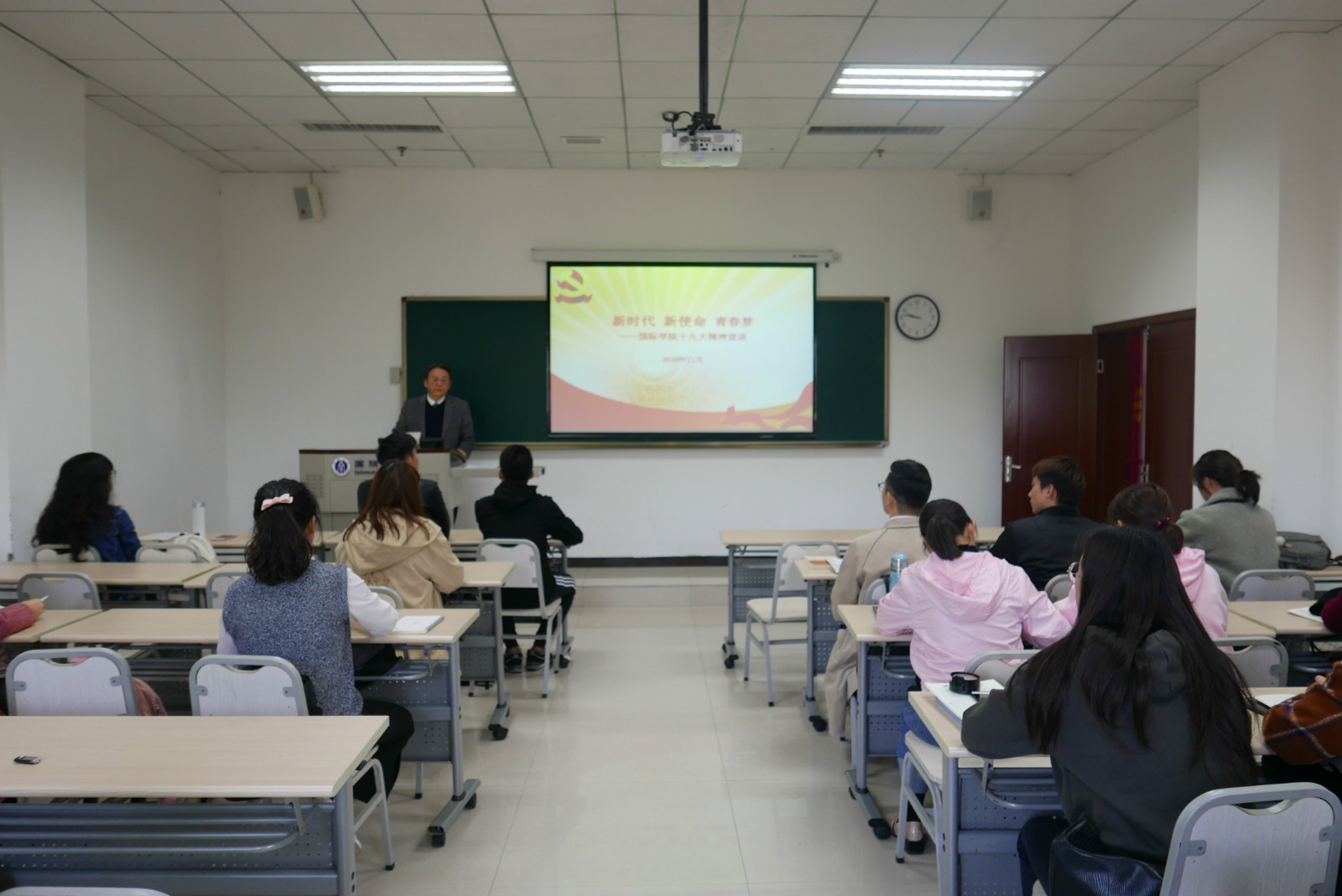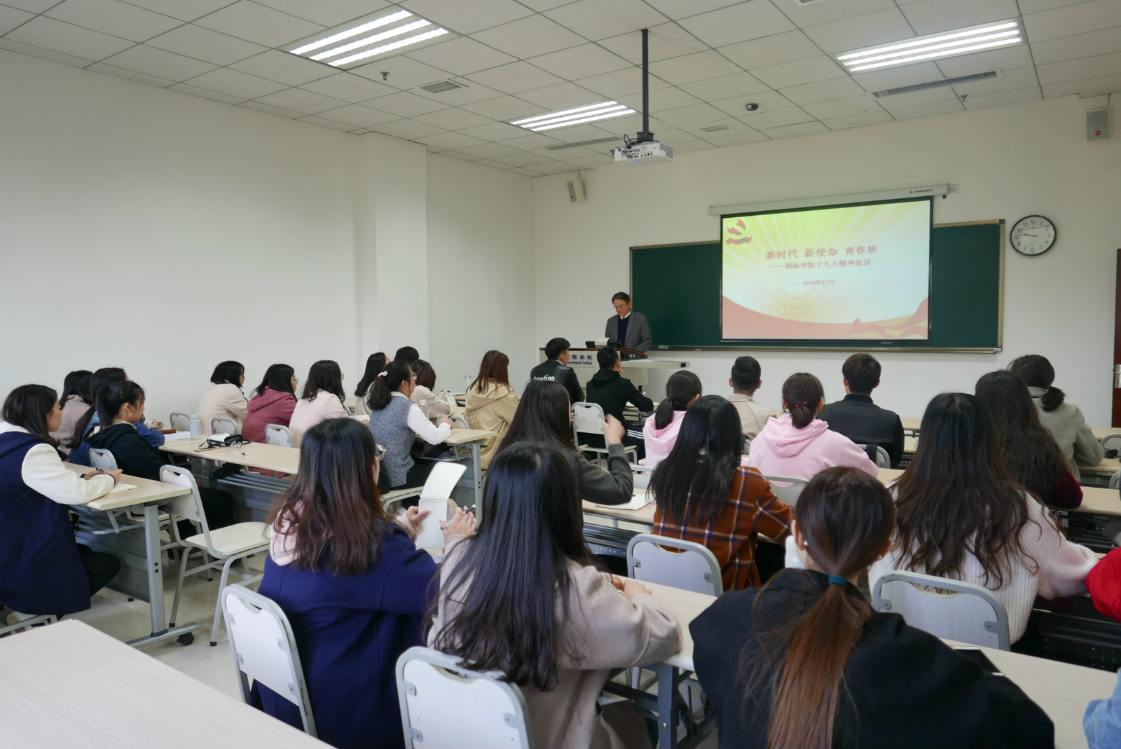 2018年11月8日14时45分,国际公司党总支书记刘猛围绕“十九大精神”这一主题,在紫云楼312教室为2018级汉语国际教育专业中国研究生上了一堂生动的党课。