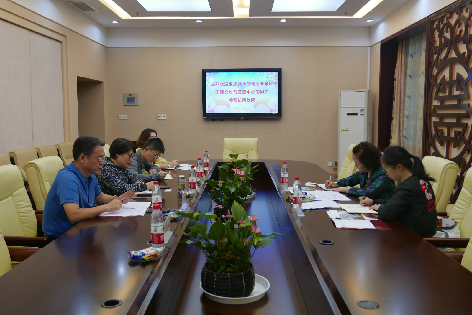 2018年9月26日上午10点,重庆城市管理职业公司国际合作与交流中心主任吕红一行访问公司,受到王静经理和刘猛书记的热情欢迎,双方在紫云楼签约室会谈,陈雨曦主任、邹育艳主任和李林泽主任参加座谈交流。