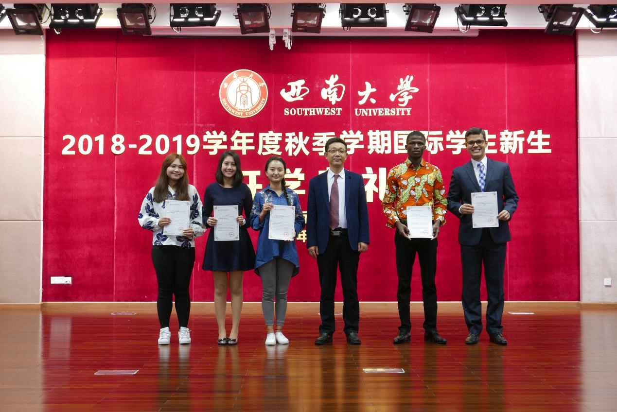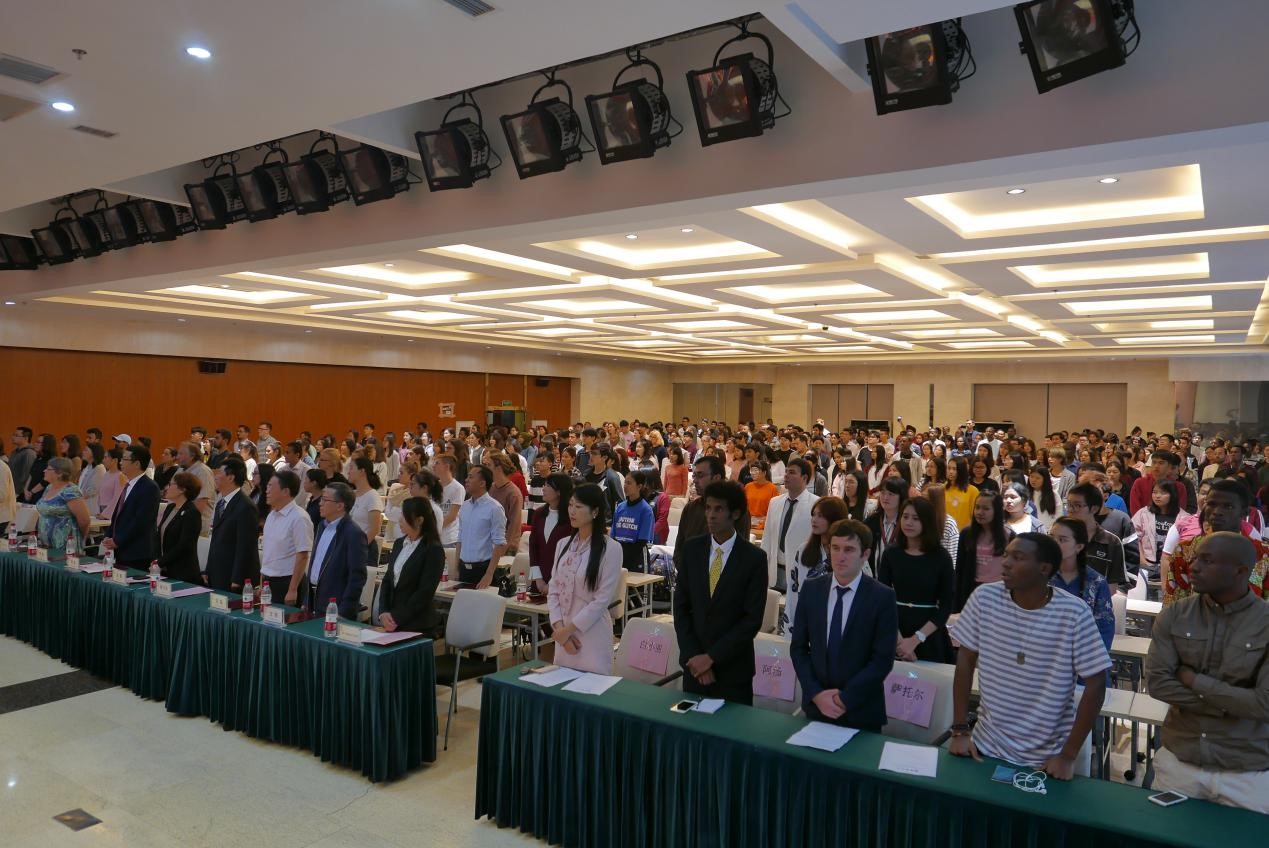 2018年9月13日上午9点,永利3044noc2018—2019学年度秋季学期国际员工新生开学典礼在永利3044noc国际学术报告厅隆重举行。副董事长靳玉乐,教务处副处长杨挺,研究生导师代表外国语公司文旭教授,美国圣约翰大学圣本尼迪克公司 Jane Opitz教授,日本广岛市立大学Fujiwara Yubi女士,永利3044noc经理王静、书记刘猛,永利3044noc全体教职员工及来自五大洲70余个国家的400余名国际员工新生参加开学典礼。
