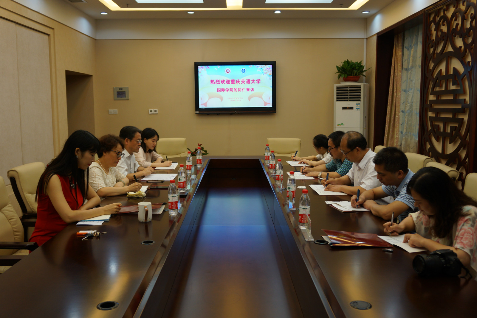 谢远光副经理介绍重庆交通大学永利3044noc的历史与现状,杨学云常务副经理对国际员工招生、经费划拨、团队配备、管理人员构成、教务管理等方面提出问题,王经理和刘书记一一作答。刘书记还建议交通大学同仁参照来华留学质量评估体系,梳理工作思路,完善管理体系。