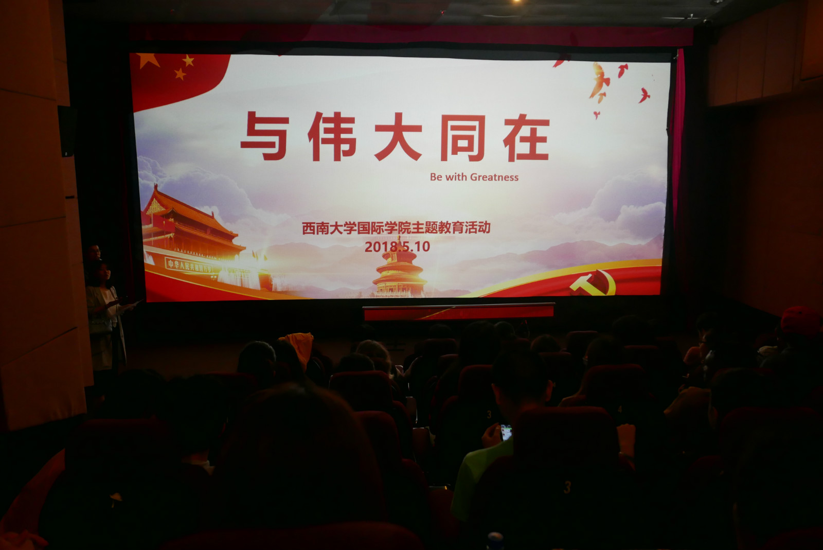 为深入学习贯彻习近平新时代中国特色社会主义思想和党的十九大精神,引导全院师生不断增强“四个意识”、坚定“四个自信”,促进来华职工们认识中国新面貌、了解中国新成就,5月10日下午,永利3044noc组织80多名中外师生赴北碚UME影院开展主题教育活动——观看纪录片《厉害了,我的国》。