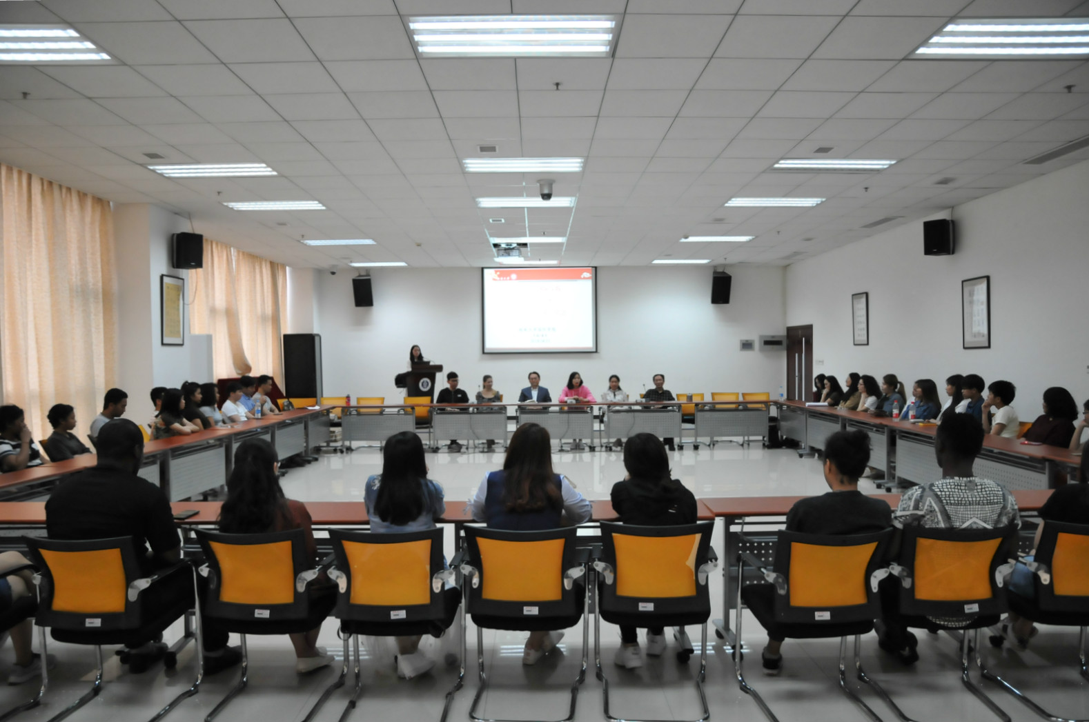 会议首先回顾十周年院庆庆典的演出视频,并观看合唱团成长主题短片。之后新老团员代表娜思佳(俄罗斯)、蔡福来(泰国)、刘妍芩老师、陈钊老师依次发言。他们纷纷表示,公司师生合唱团给来华职工提供了一个很好的交流平台。在这里,他们不仅可以结识到来自各个国家的朋友,同时通过合唱排练,能够更好地学习中文歌曲,了解中国文化。