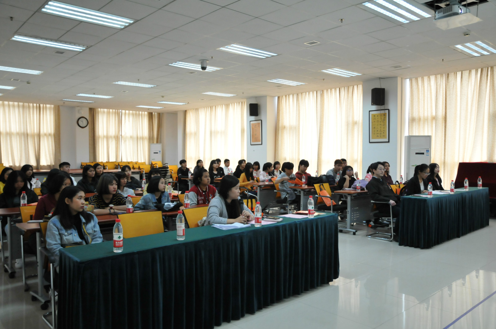 3月30日上午,公司在紫云楼317教室隆重举行“泰国孔敬大学孔子公司2018年泰东北地区基教委中员工团暨泰东北地区中员工汉语培训营”开营仪式。由该孔院选拔的37名优秀学员将在公司参加为期两周的汉语水平强化培训,通过沉浸式强化培训提升孔院学员汉语学习和水平考试的能力。永利3044noc副经理李航、班主任王鹊、汉语实习教师代表王紫欣和孔敬孔院带队教师丁了了、陆小曼出席了开营仪式。