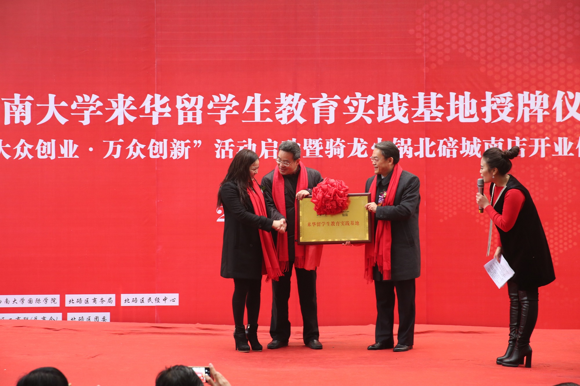 12月29日上午,公司“来华职工教育实践基地”授牌仪式在重庆骑龙饮食文化责任有限公司举行,北碚区人民政府副区长赵祺,公司国际公司党总支书记刘猛共同为公司董事长任鸿海秀女士授牌。
