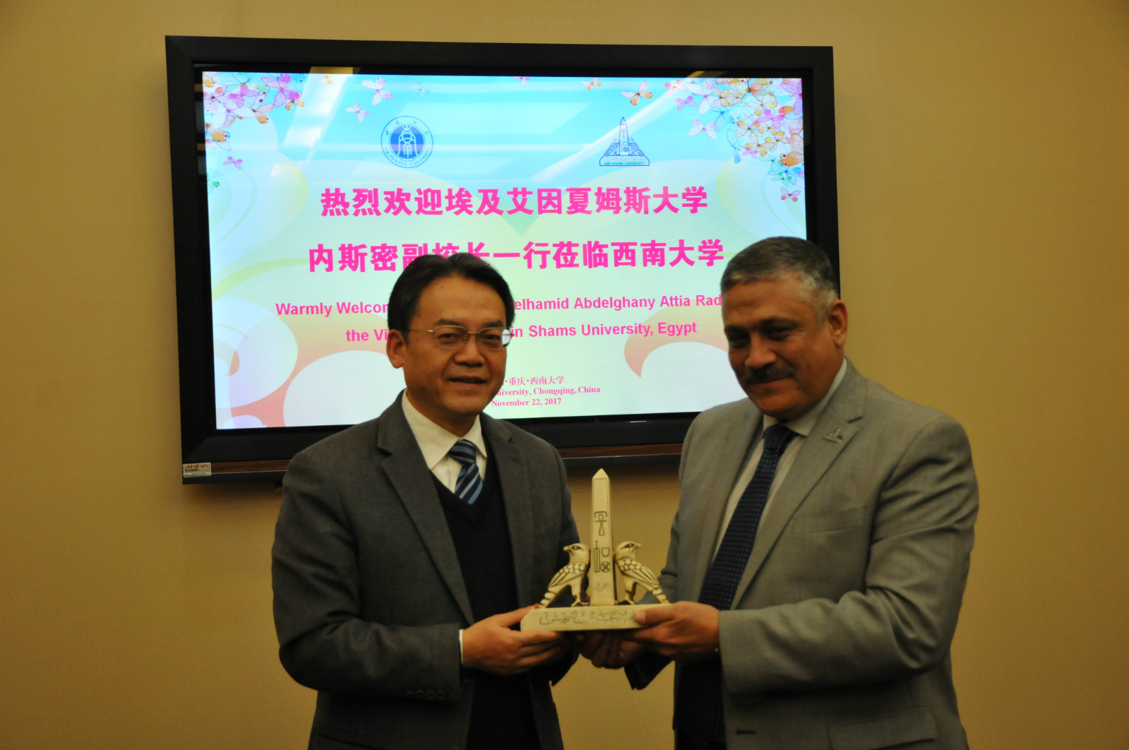 据悉,艾因夏姆斯大学位于埃及首都开罗,是埃及的第三大综合性大学。汉语专业是该校的特色优势专业。该校自1958年开设汉语专业,目前有1000多名汉语专业在读员工,是中东和非洲地区规模最大的高等汉语教学基地和培养汉语教师的摇篮。