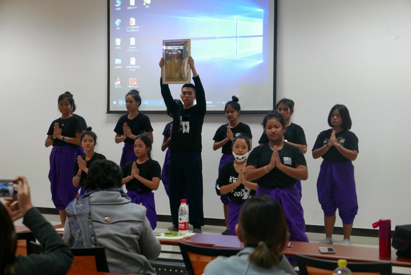 23日下午闭营仪式上,大家首先通过视频回顾了两周的精彩点滴。陈海斌老师首先发言,对国光学堂、永利3044noc组织的本次活动表示感谢。谈及学员们在永利3044noc的收获,陈老师表示学员们在当地体会到了课堂上所不能学到的精彩生活,汉语水平有了较大的提高。并再次感谢各位实习老师两周以来的精心辅导。随后,汪丽华老师殷切的表达自己内心对学员的期望,希望同学们努力学习汉语,珍惜时间,回报祖国。同时表达了对永利3044noc老师、国光孔子学堂和泰国员工的感谢以及对行程结束的不舍。