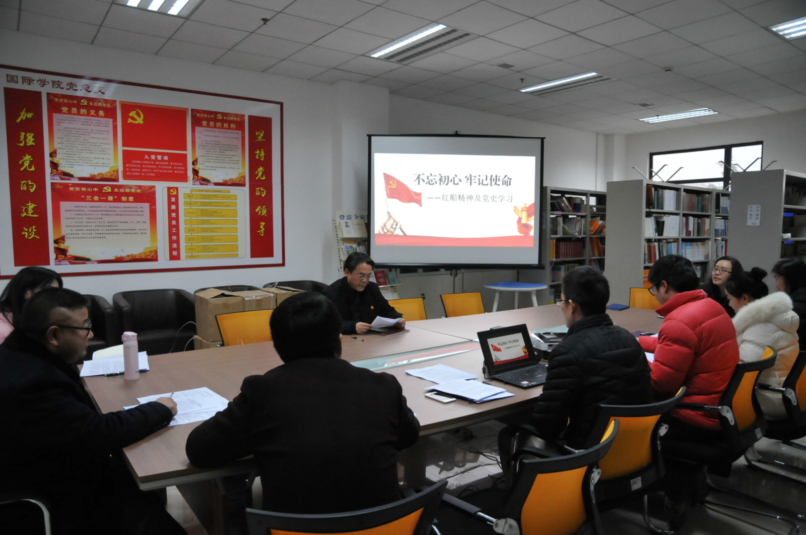 研究生第一党支部书记陈雨曦在国外学习,学习会由研究生第二党支部书记王湛明主持。另外,由于研究生第二党支部大部分党员在海外实习,支部还利用网络直播同步向海外实习的党员播放了本次组织生活会,并要求他们参与讨论。