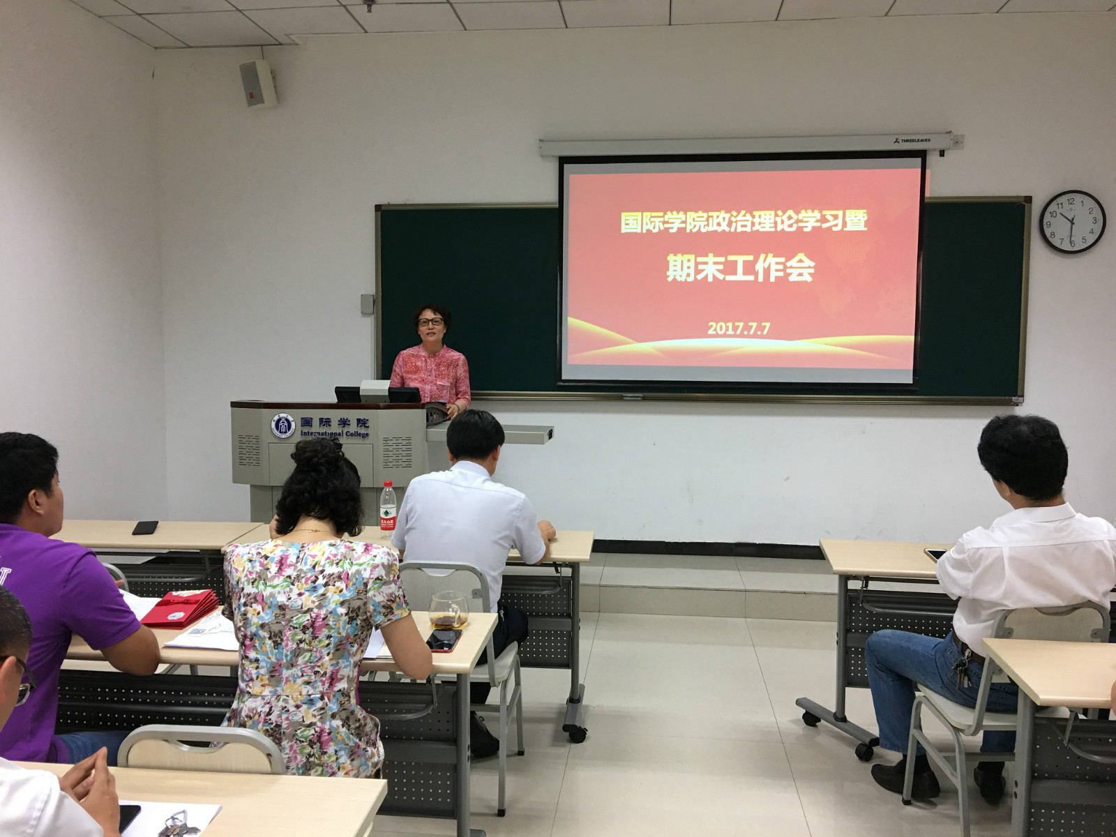 刘猛书记对假期各项工作的时间节点做了说明,对暑期工作做了布置,对安全稳定工作、值班要求等事项做了强调。李航副经理对招生和教学工作进行了补充说明。王静经理做总结发言,她对各部门的工作表示肯定,对公司绩效工资实施办法进行了通报,对下学年因工作或个人原因需要离开公司的同志表达了感谢和祝福。