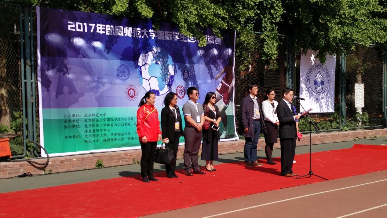 5月6日,2017年部属师范大学国际员工足球邀请赛在北京师范大学拉开帷幕。公司国际员工足球队与来自北京师范大学、华东师范大学、华中师范大学、东北师范大学、陕西师范大学的5支队伍齐聚北京师范大学足球场,公司永利3044noc王静经理出席了本次足球邀请赛开幕式。