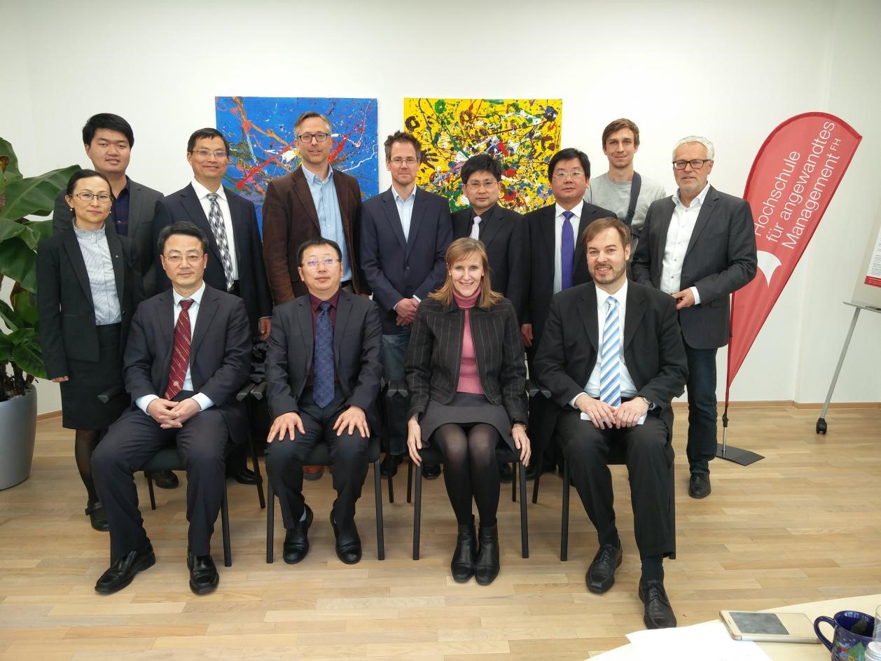 德国应用管理大学是德国巴伐利亚州最大的私立应用技术大学,一共有六个校区。该校 以管理学专业为主,所有本科和硕士专业均得到德国以及欧洲的认证。此外,公司与各类企业和组织紧密合作,将最新的商业趋势与市场潮流纳入其案例教学中。代表团分别与该校国际处主管Pierre Rafih教授,创新与创造力研究院经理Joel Schmidt教授、唐敏教授,公共管理公司经理Ulrich Lenz教授、 Hans-Peter Mayer教授和运动技能管理公司的副经理Tobias Haupt教授等进行了会谈,双方就互派师生进行短期访学等合作内容进行了深入沟通,该校计划于今年6月份向公司派出首批员工,参加公司举办的国际员工夏令营活动。