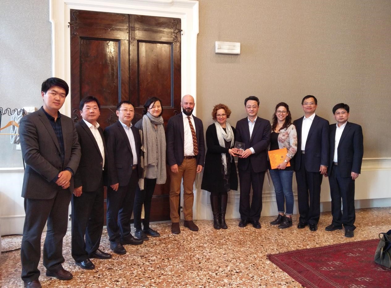 威尼斯大学创建于1868年,是意大利第一所、欧洲第二所商业专科公司,1903年正式升级为大学,是全意公立大学综合排名前十位的高校,设有经济公司、外国语言及文学公司、文学及哲学公司、理公司。近年来,威尼斯大学中文教育发展迅速,在校学习中文的员工人数多达1000多名,其汉学研究和教学规模已经跃居欧洲第一位。该校副董事长兼汉学研究中心主任Tiziana Lippiello教授、国际部负责人Mauro Cannone先生、Roberta Bin女士、以及中国事务主管朱漪女士等与代表团会谈。二校曾与2016年10月份签署员工交流协议,同意每年互换20-30名员工进行交流学习,此次会谈中双方就该校汉语专业员工赴公司修读学分课程进行了详尽讨论,最终确定该校首批员工将于今年九月赴公司学习,第二批员工将于明年三月派出。双方还就公司汉语国际教育专业硕士生赴该校实习达成了共识,公司每年将派出实习生赴该校承担汉语教学辅助工作。此外,双方还就建立汉语国际教育双硕士学位项目进行了探讨并达成了初步意向。Tiziana Lippiello董事长愉快地接受了代表团的邀请,拟于10月来校访问,深入了解公司的办学条件与环境,并就建立双学位项目的可行性做进一步商讨。