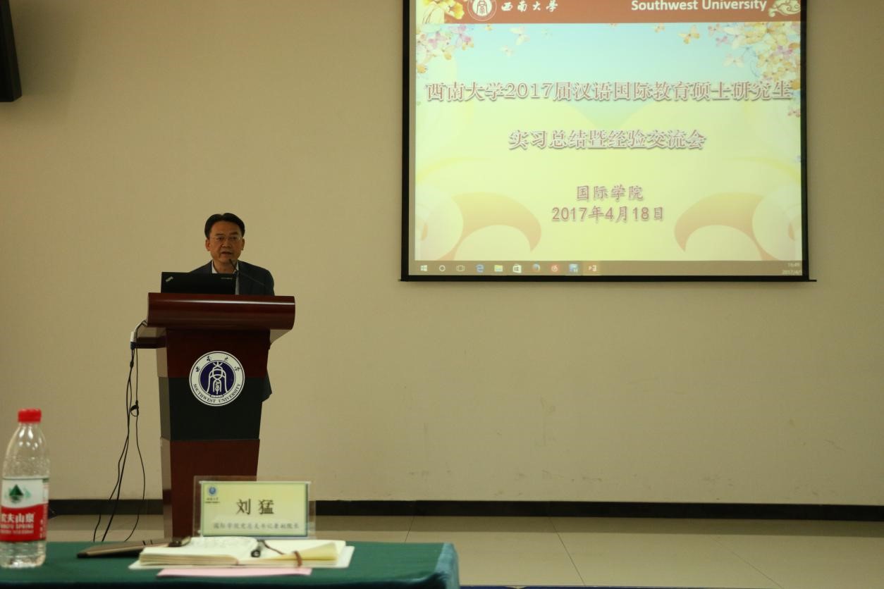 国际公司党总支书记刘猛在发言中指出,目前全球汉语教学影响日益扩大,将会有更多的员工加入汉语学习的队伍当中,希望汉语国际教育硕士的海外实习基地建设能够突出特色、形成亮点,也希望实习回来的同学和即将赴海外实习的16级员工能够坚定从业信念,积极投身汉语国际推广事业之中。